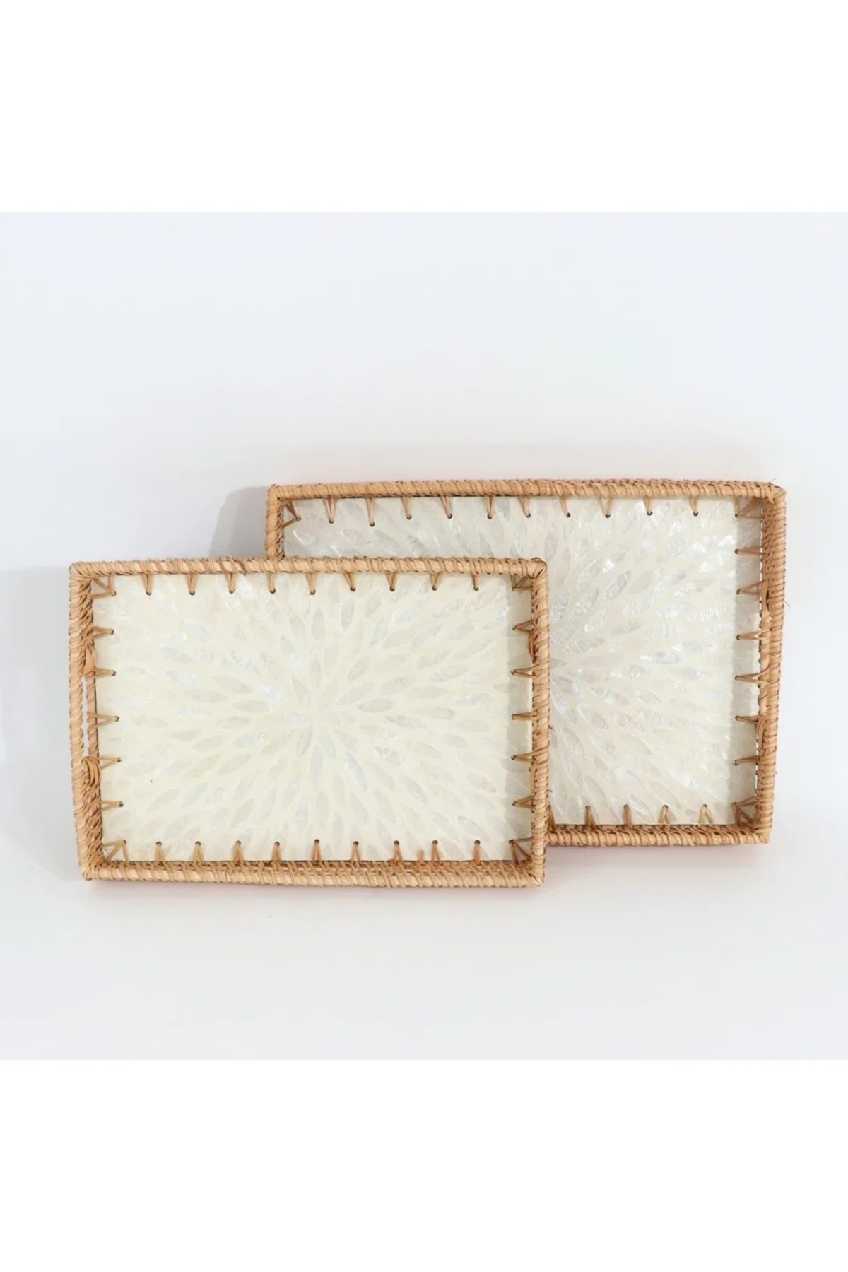rexa طقم صينية تقديم من الخيزران بقاعدة مزخرفة – قطعتين
