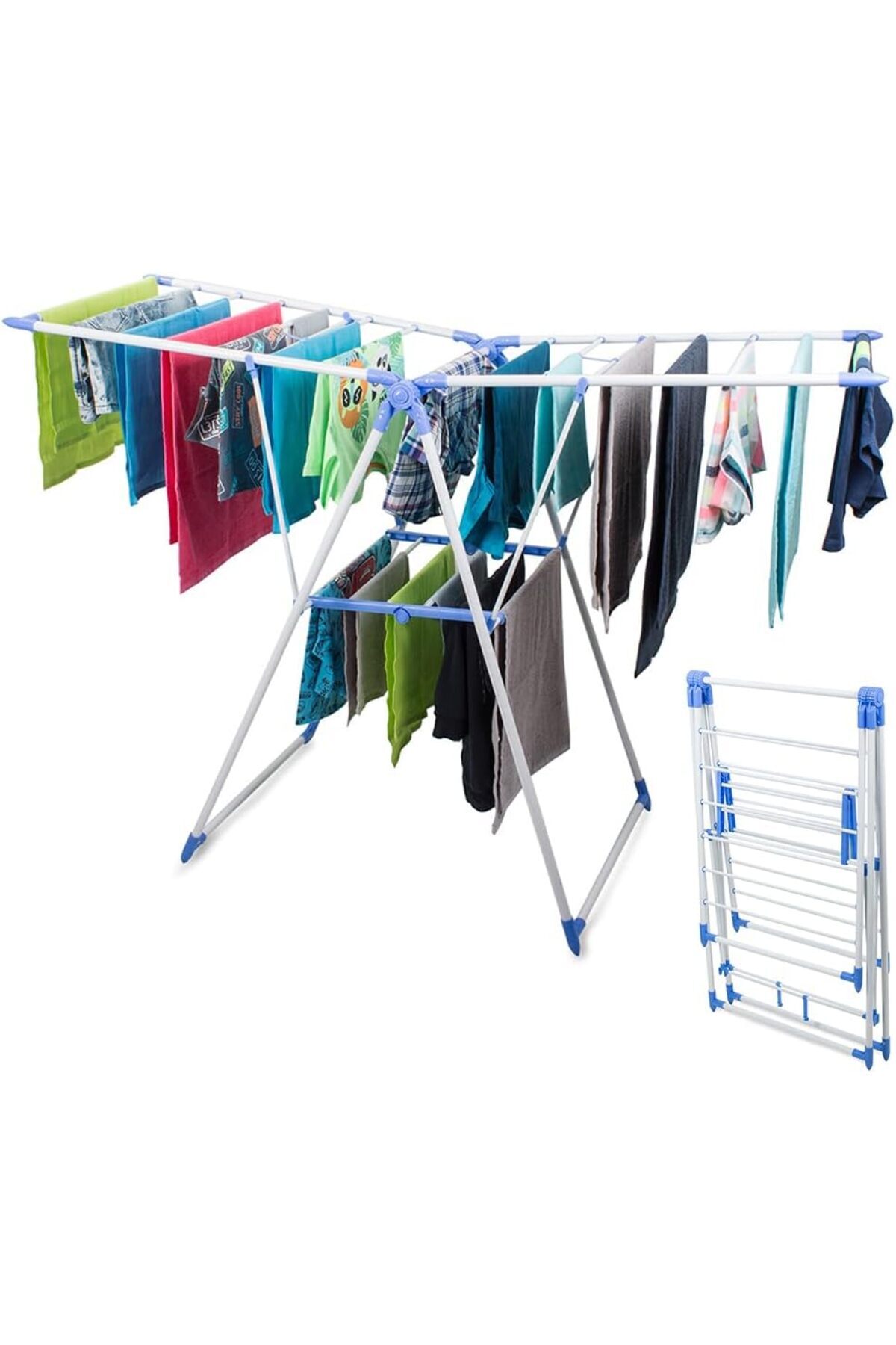 - تنظيم ذكي: الأجنحة الجانبية والأرفف المتعددة تتيح لكِ فصل الملابس حسب النوع أو الحجم، ما يسرّع عملية التجفيف ويمنع تداخل القطع.