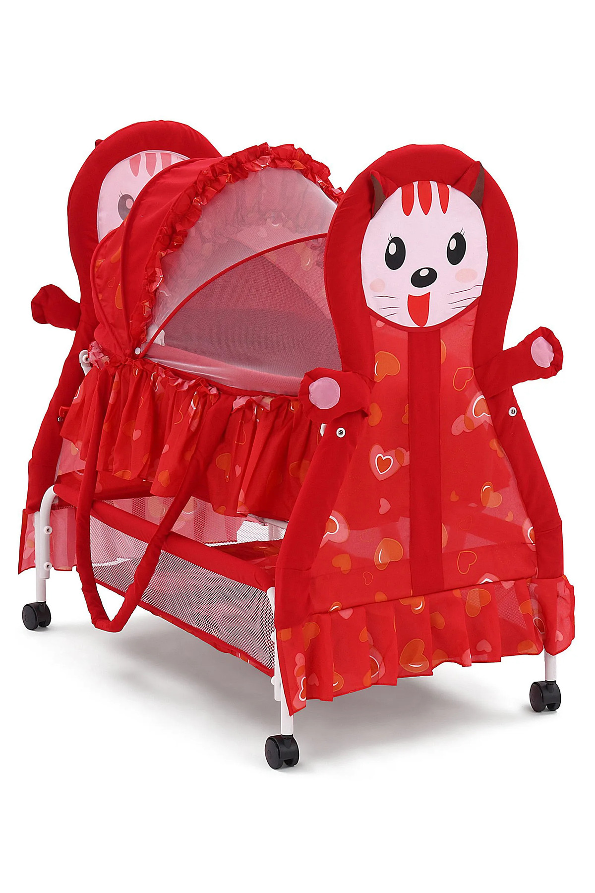 rexa مهد مطبوع عليه صورة قطة مع ناموسية ووظيفة قفل التأرجح