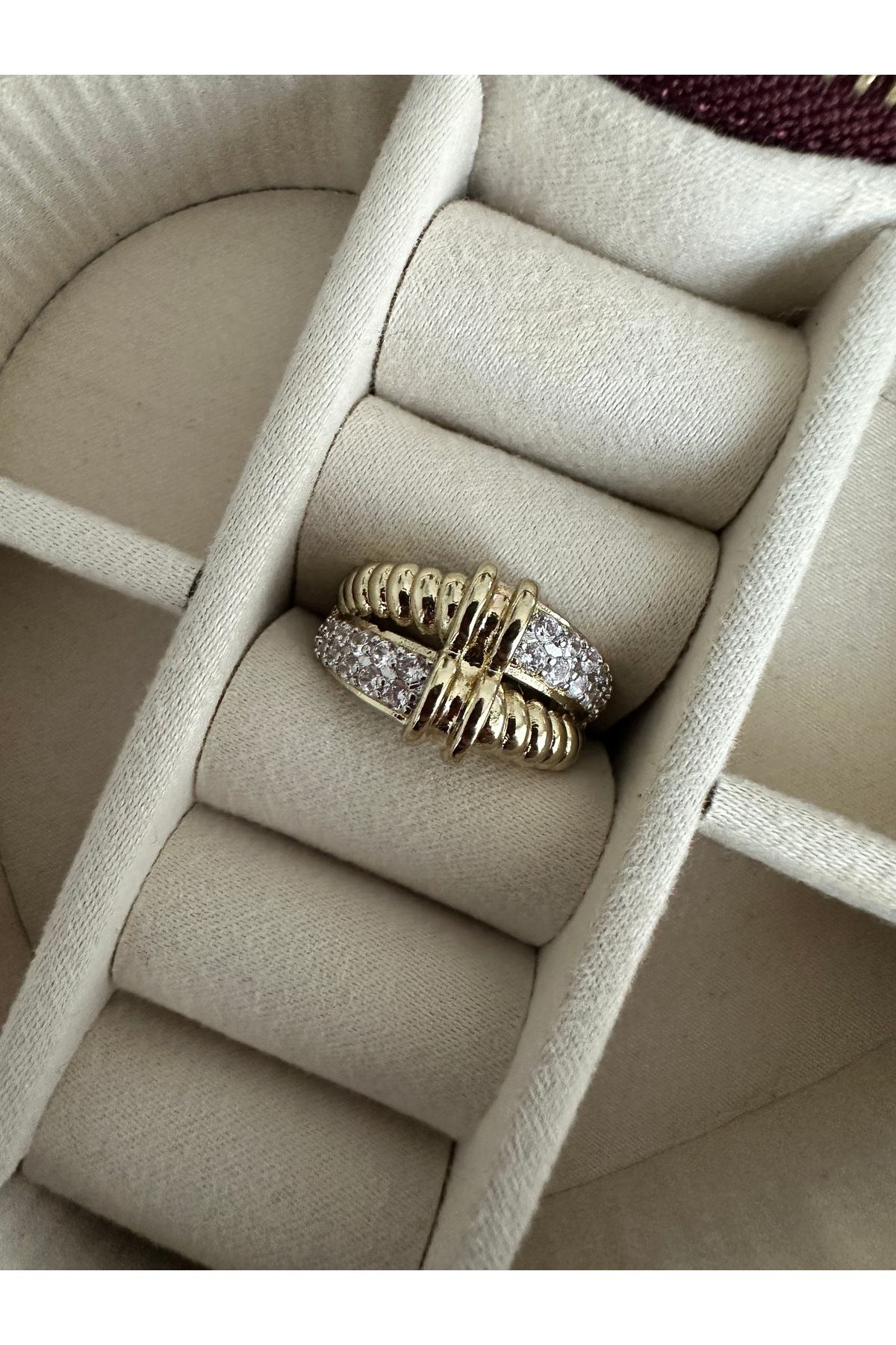 ميزات خاتم حجري مزدوج الصفين بلونين من ringbox