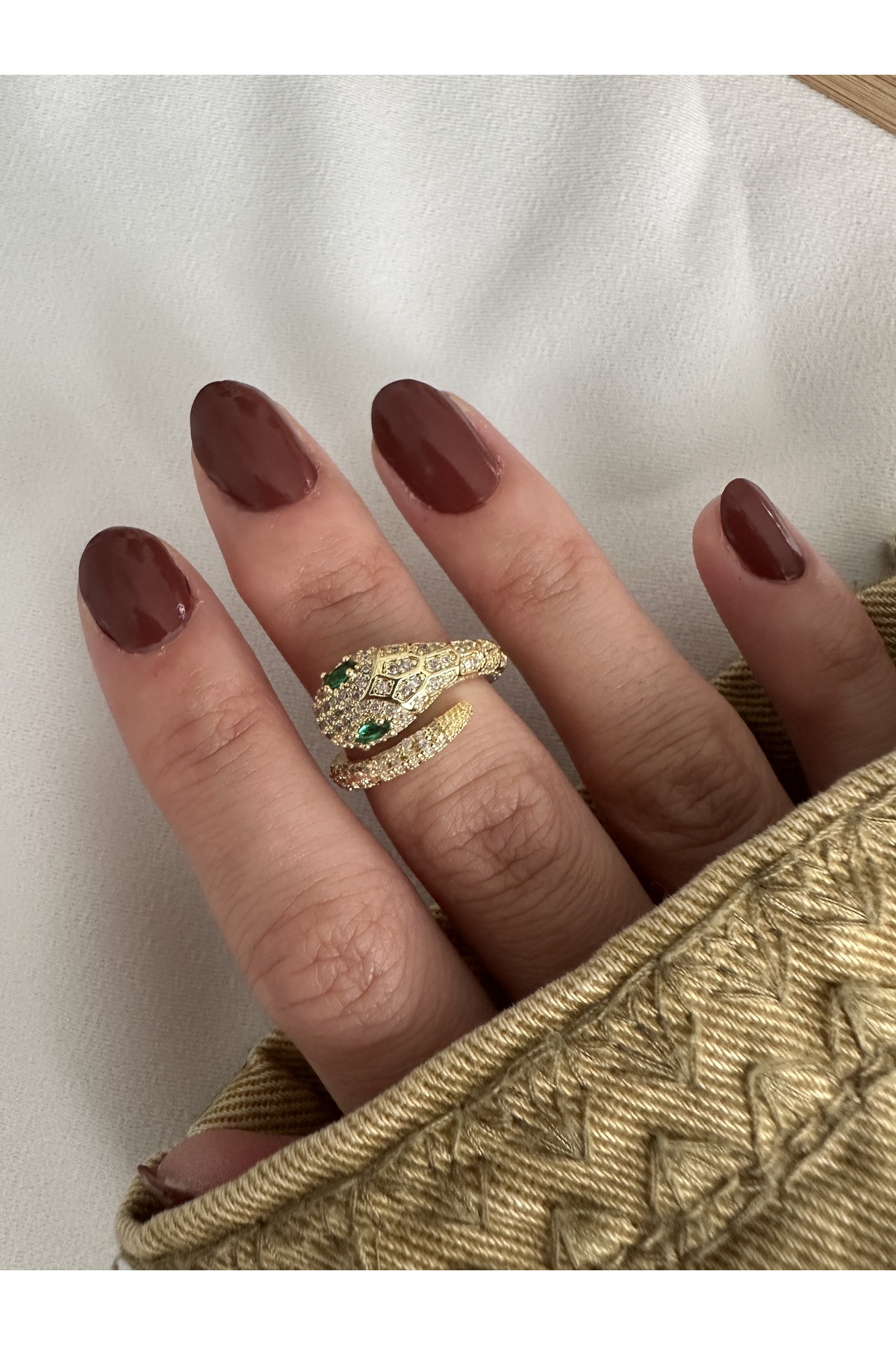 ميزات خاتم على شكل ثعبان من الحجر الأخضر الذهبي من ringbox
