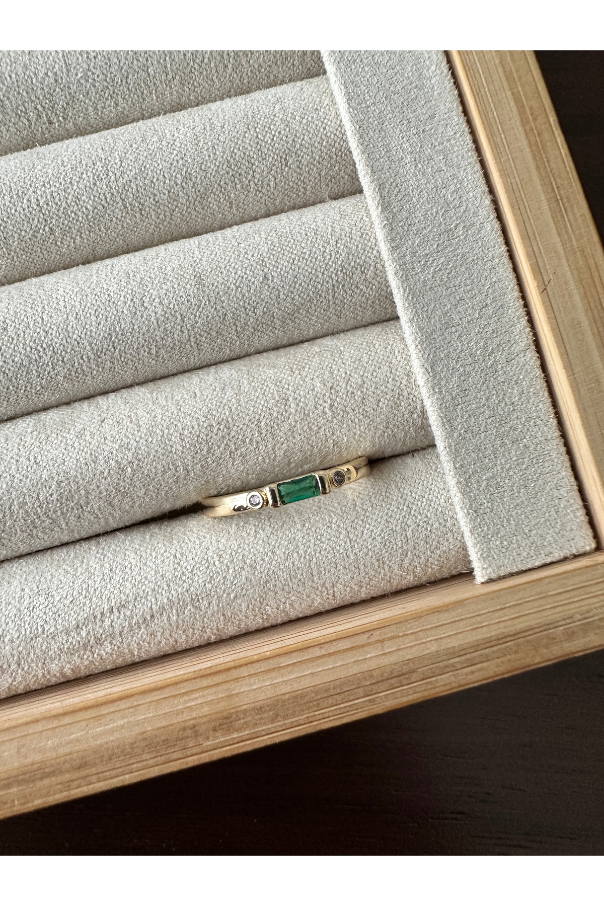 ميزات خاتم ذهبي صغير مرصع بالحجر الأخضر من ringbox