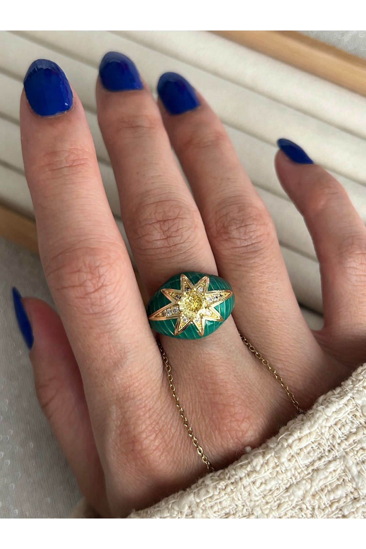 ميزات خاتم من الحجر المستدير المينا الأخضر من ringbox