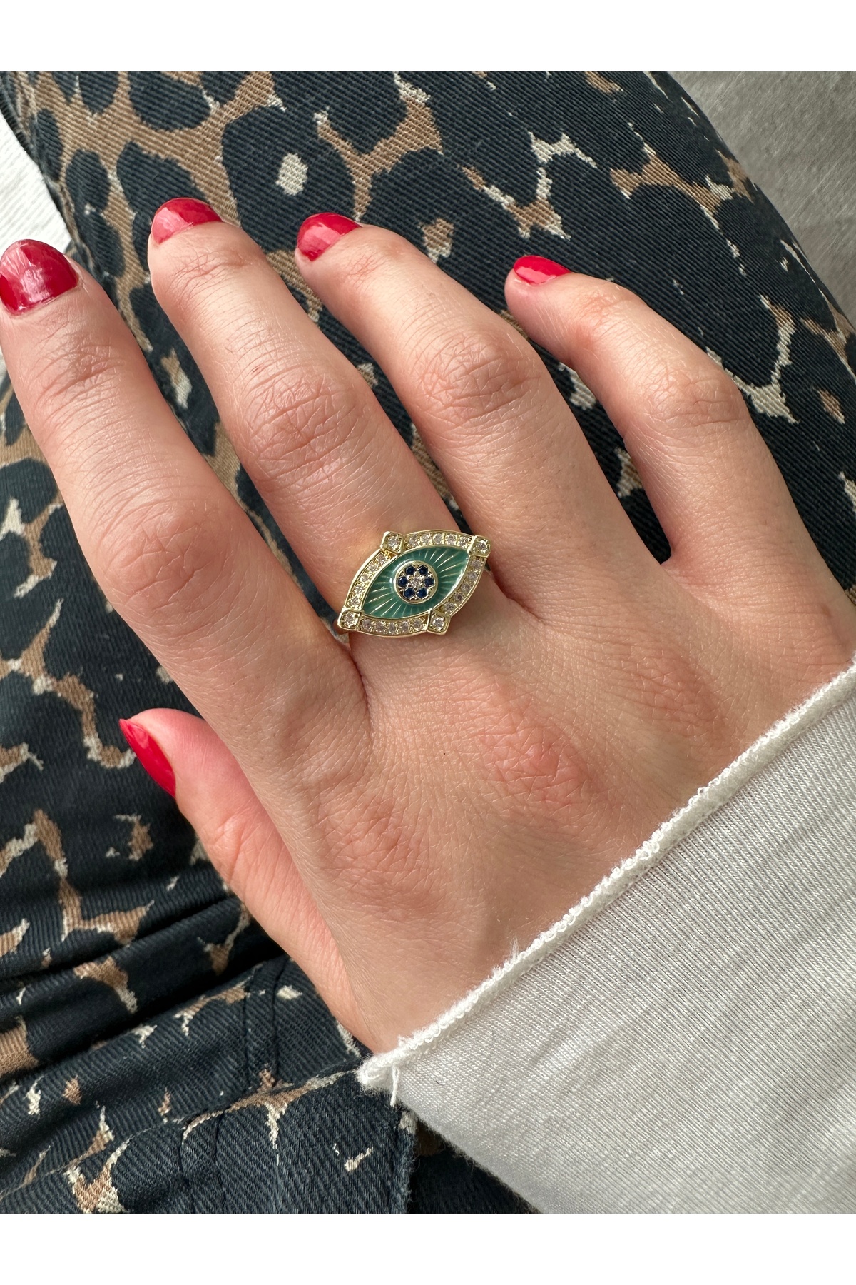 ميزات خاتم العين الأخضر المزين بالزهور من ringbox