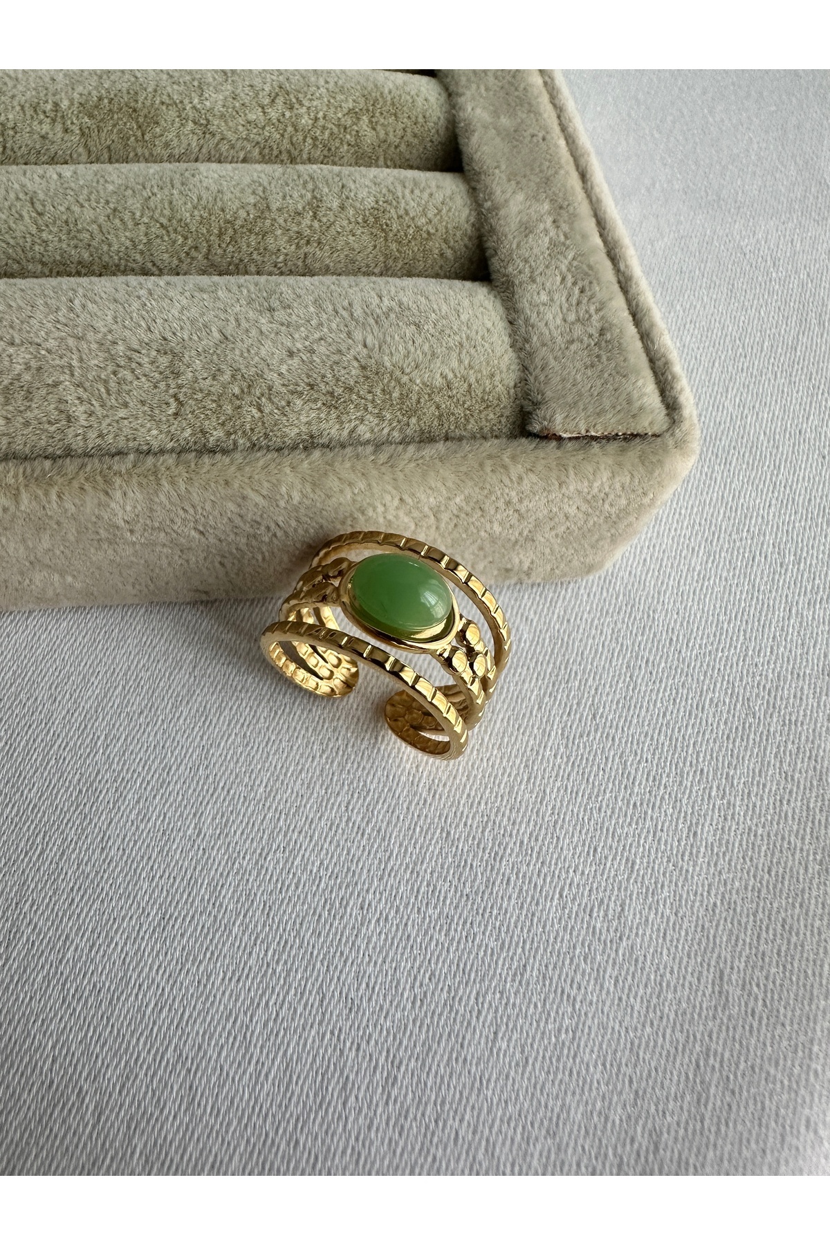 ringbox خاتم من الفولاذ بحجر أخضر