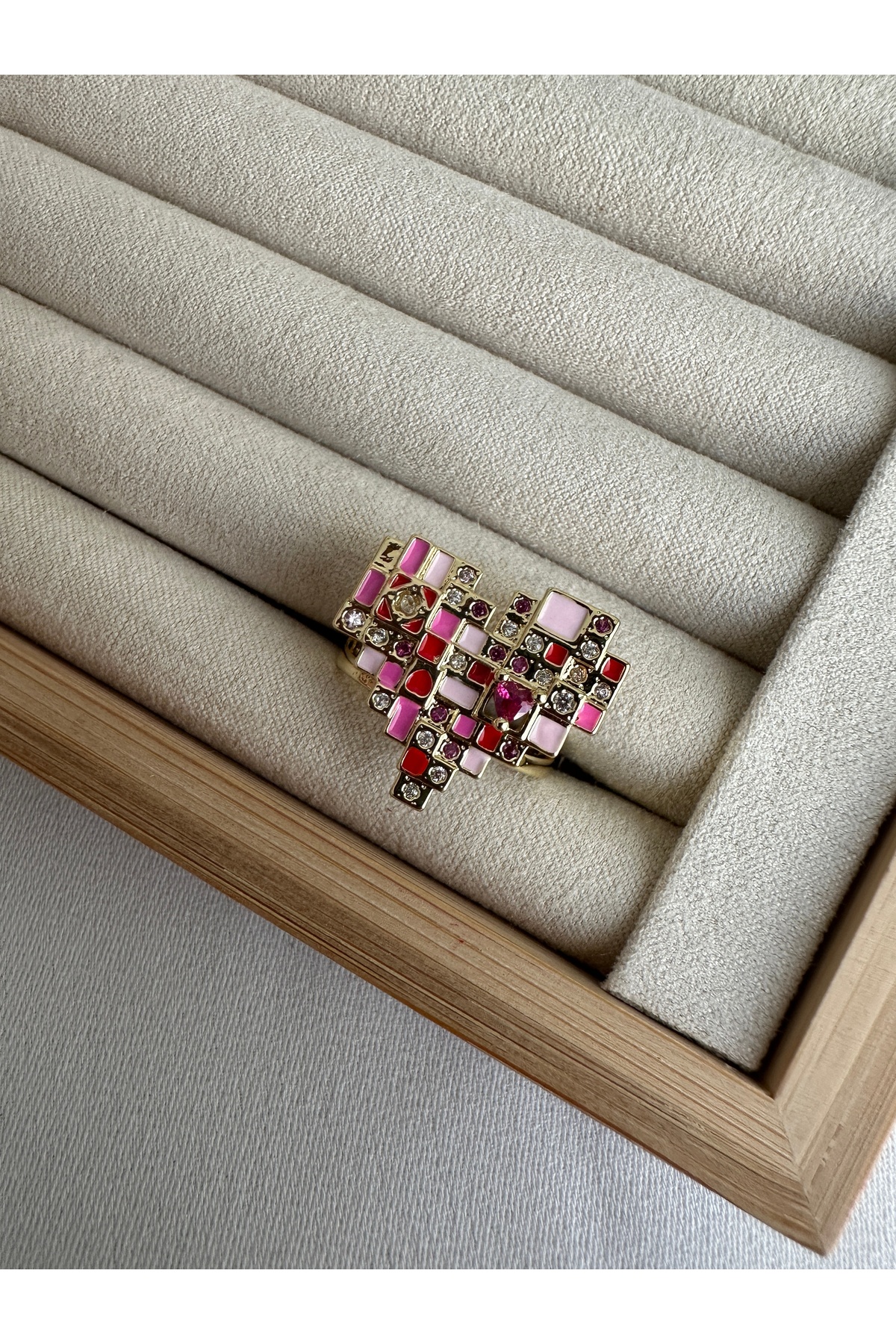 ringbox خاتم قلب بكسل وردي