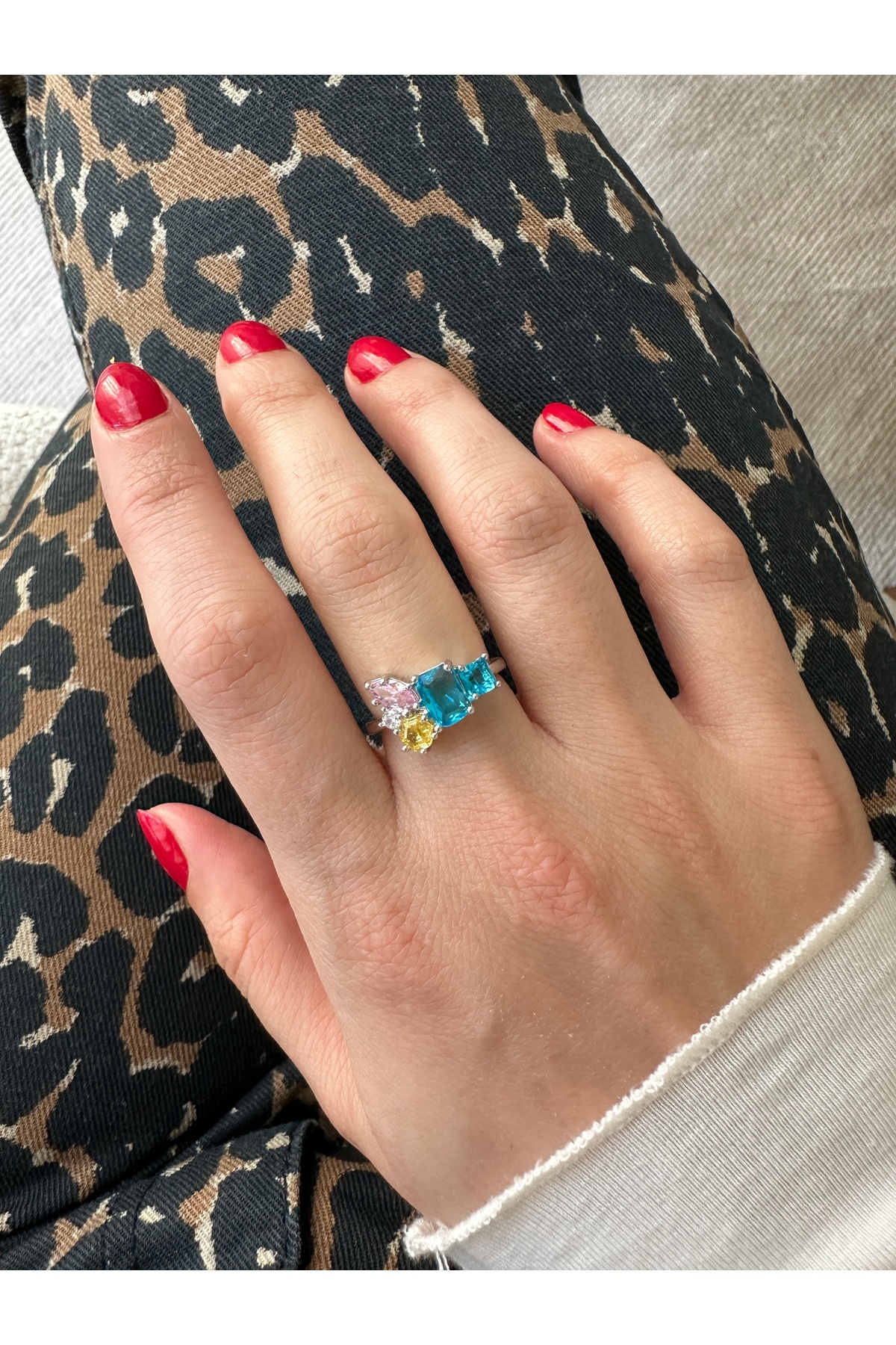 ringbox خواتم فضية اللون زرقاء متعددة مرصّع بالأحجار