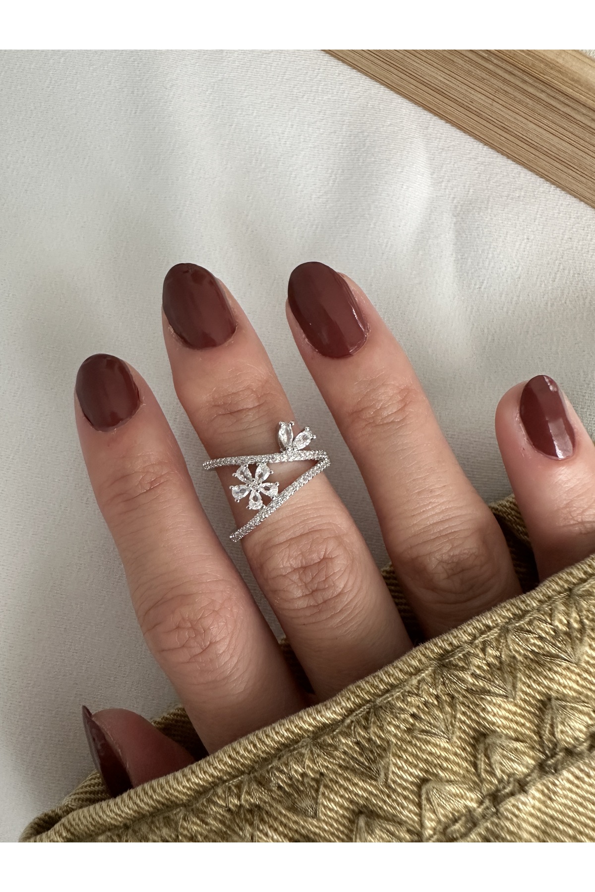 ميزات خاتم على شكل زهرة البرسيم من الحجر الفضي اللون من ringbox