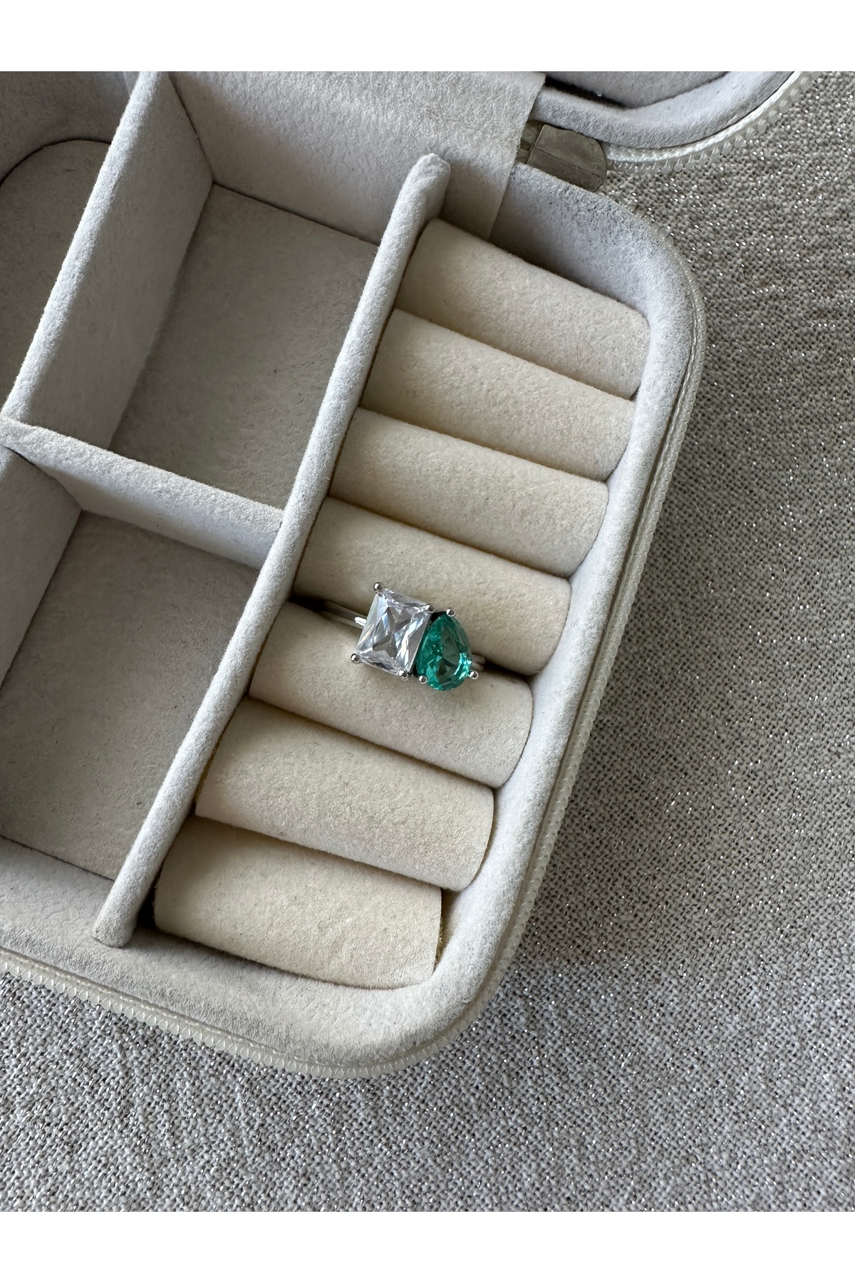 ringbox خاتم فضي اللون باللون الفيروزي عدد مرصّع بالأحجار