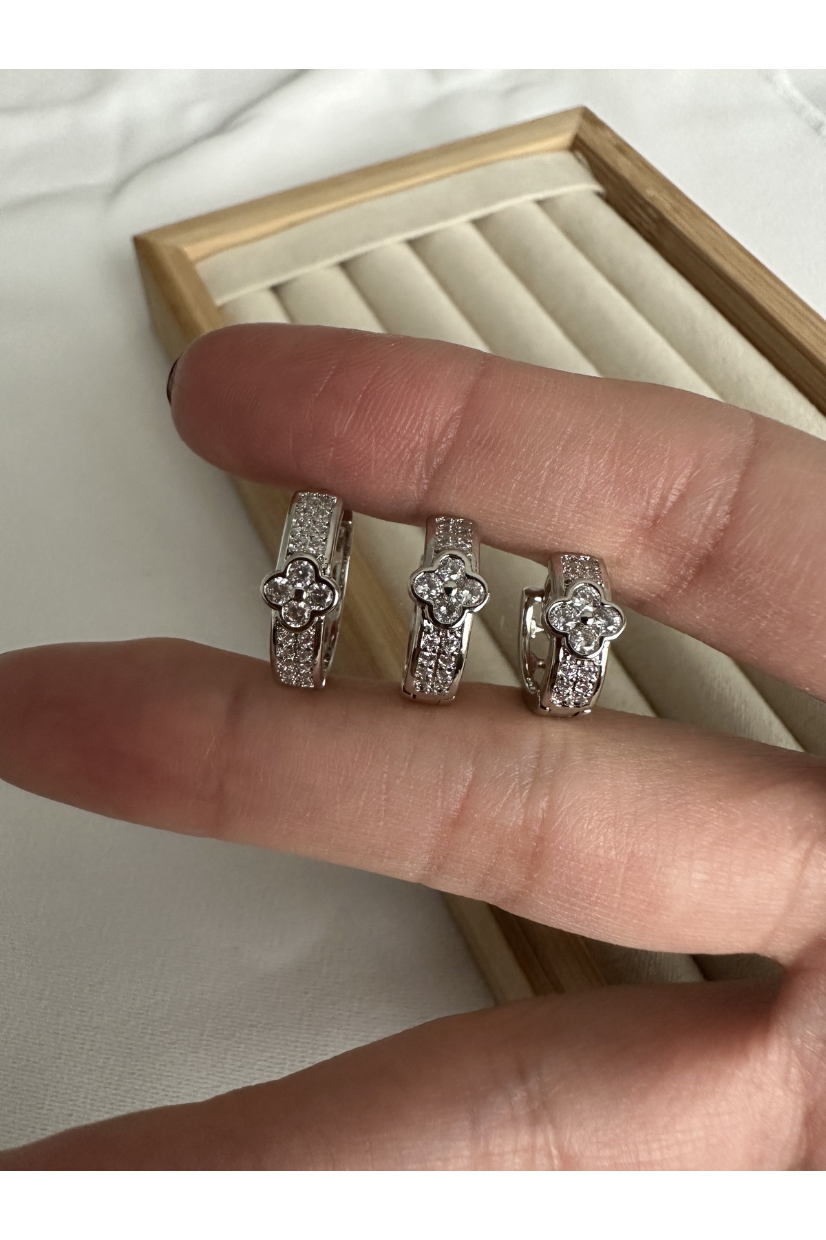 ميزات طقم أقراط من الفضة مكون من 3 قطع من ringbox