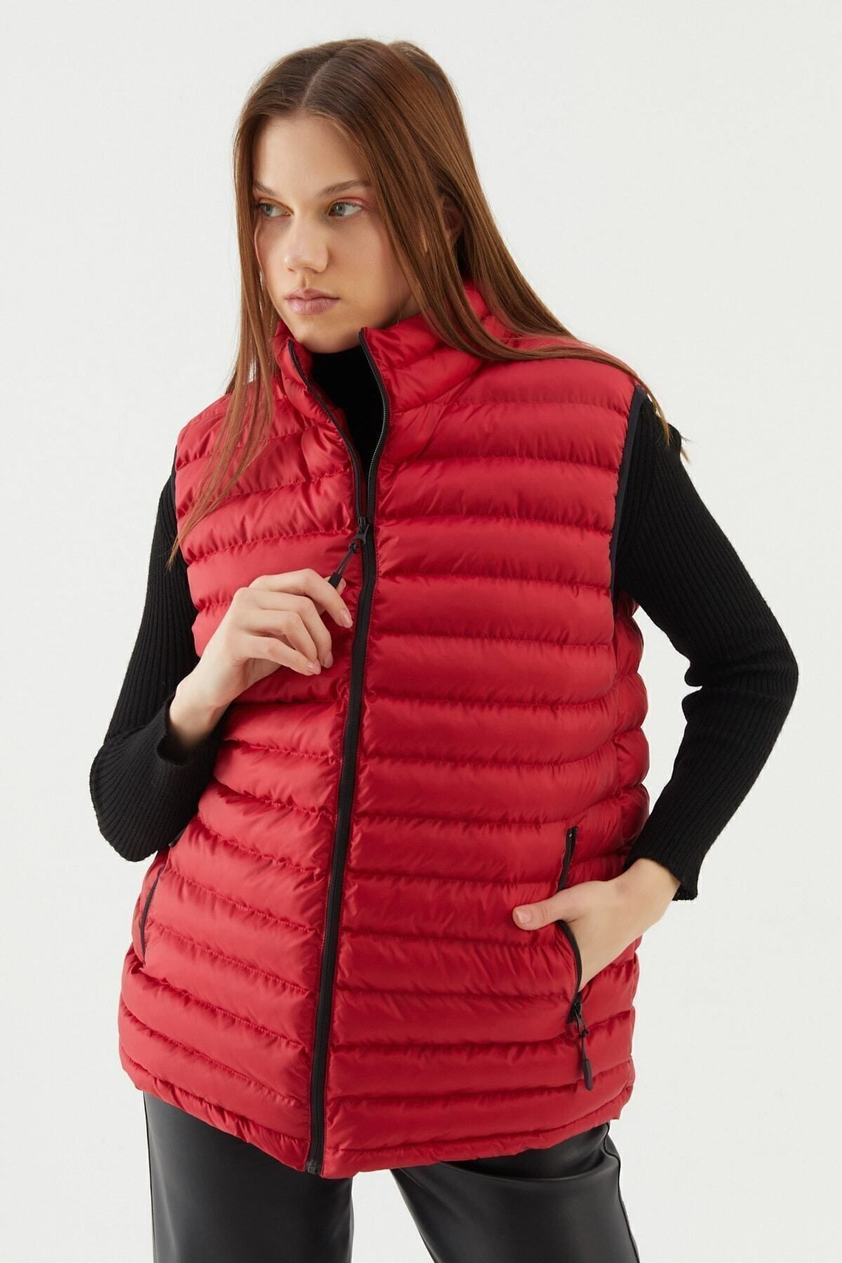 ميزات سترة حمراء قابلة للنفخ - مقاومة للرياح، مبطنة، مقاس عادي من river green