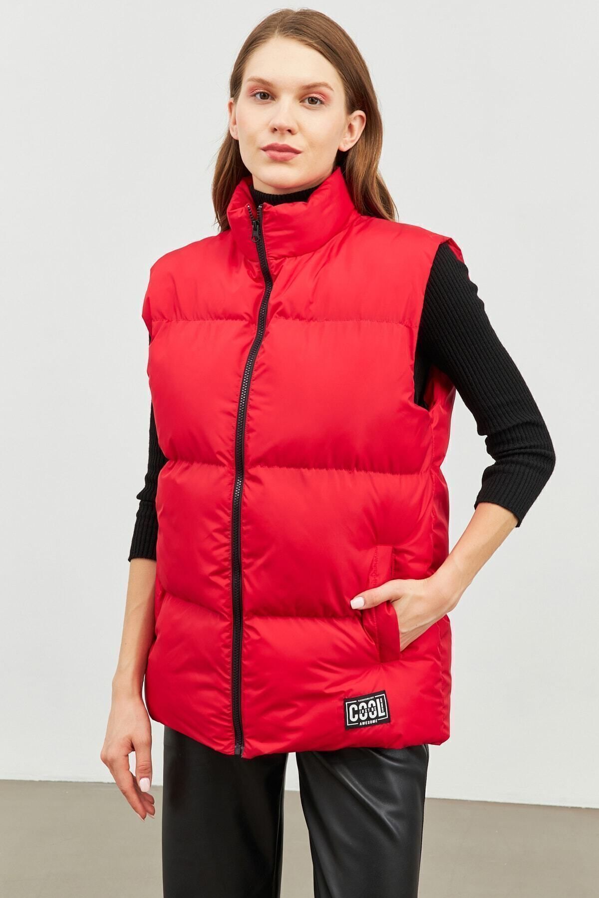 ميزات سترة حمراء قابلة للنفخ - مقاومة للرياح، مبطنة، مقاس عادي من river green
