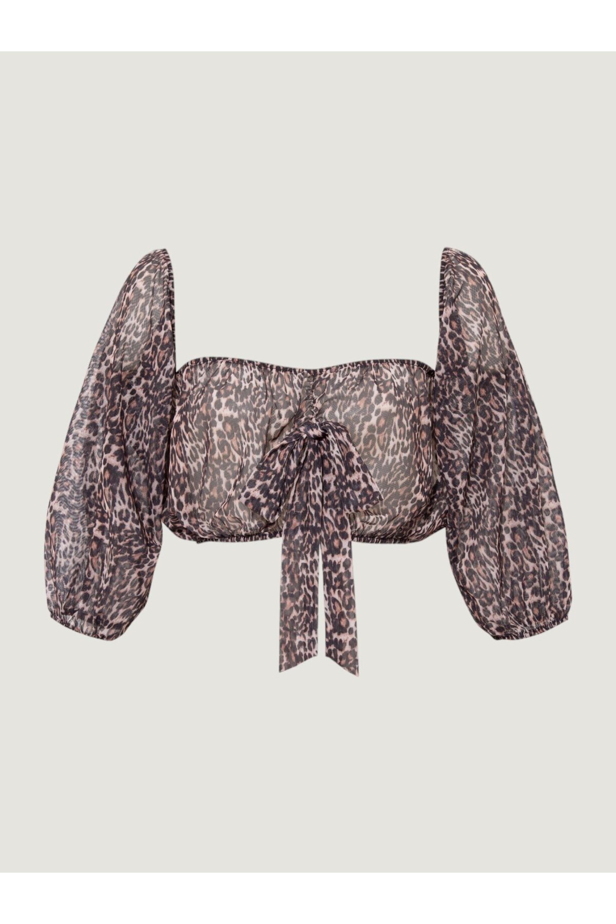 Rivus بلوزة قصيرة وظيفية بطبعة جلد الفهد - بدون أكتاف