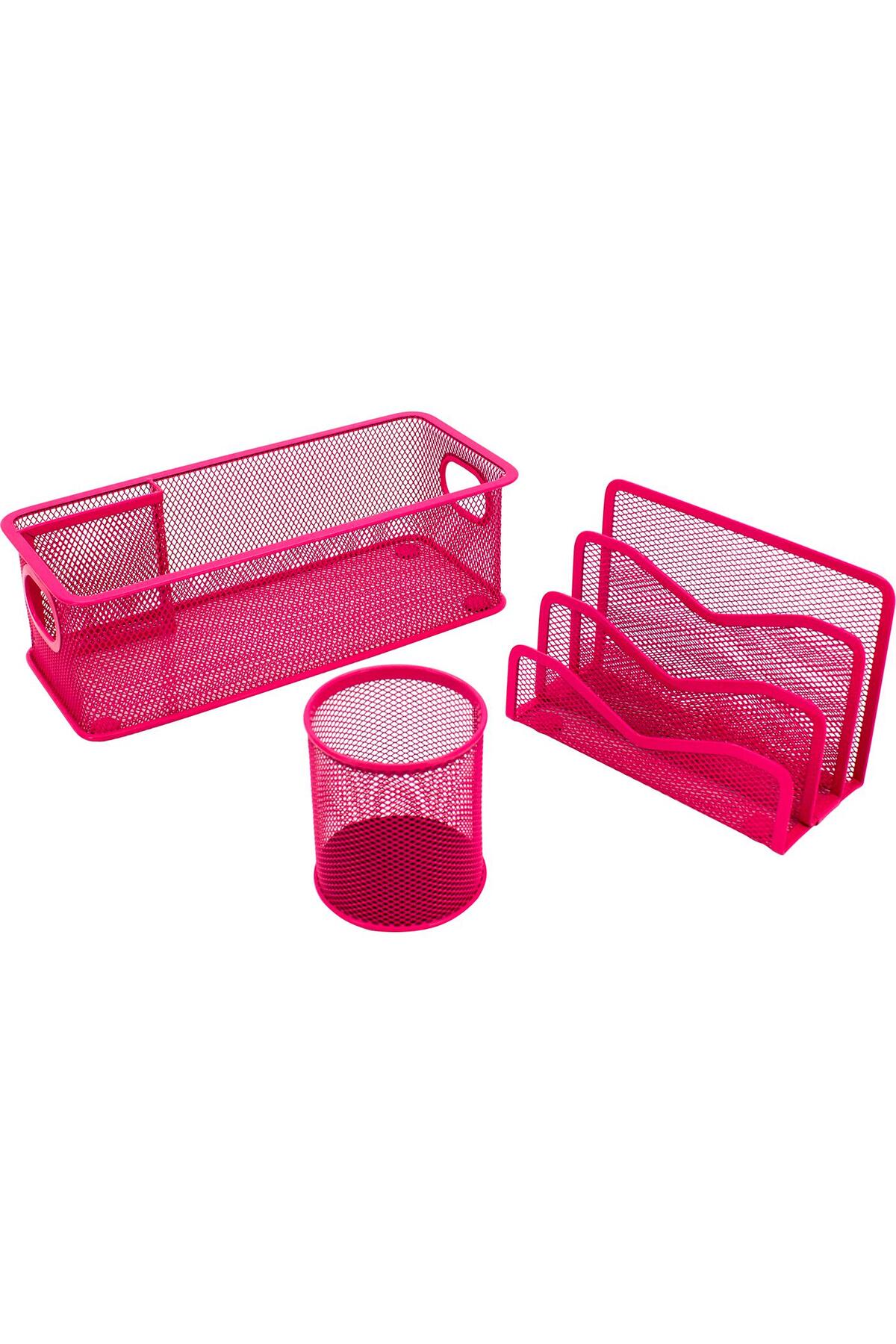 ميزات طقم مكتب - 3 قطع، شبكي، وردي من Roco