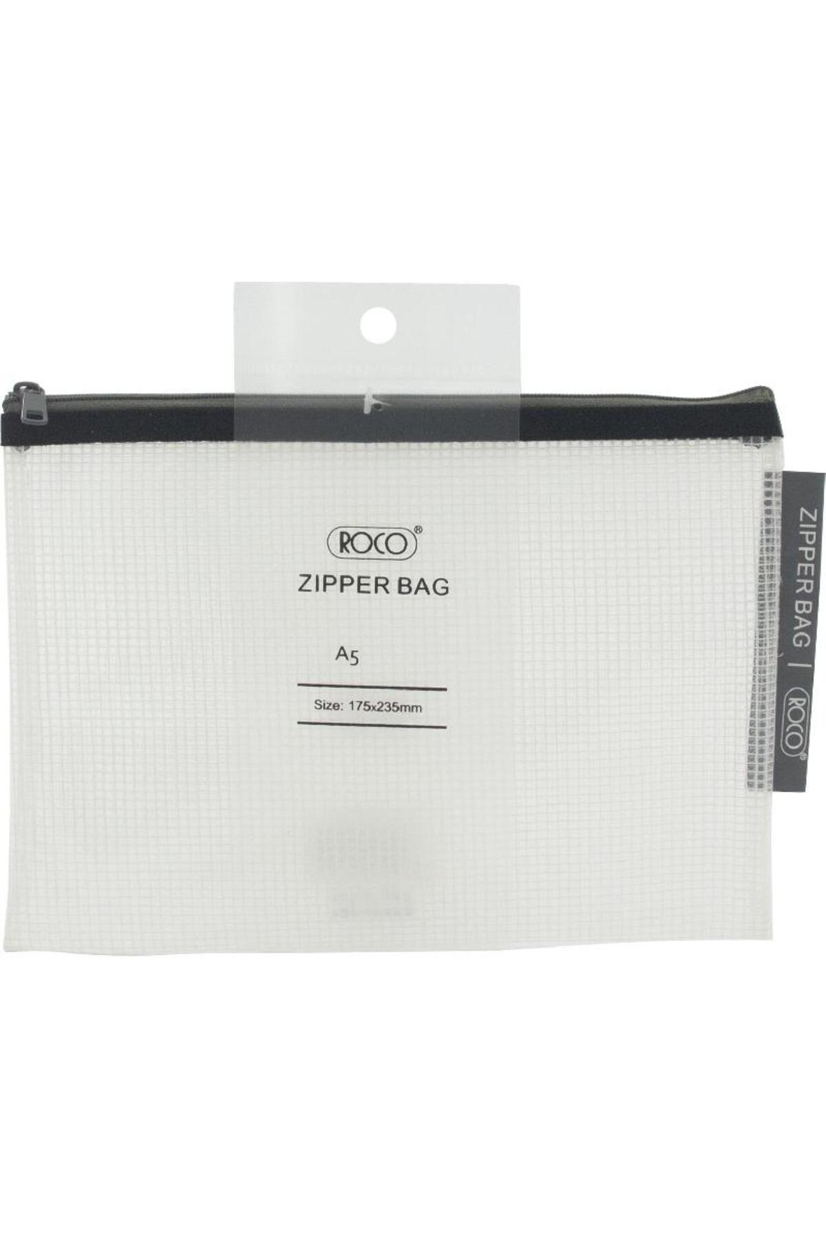 Roco حقيبة مستندات A5 - فتحة تحميل علوية، شفافة مع لمسة سوداء