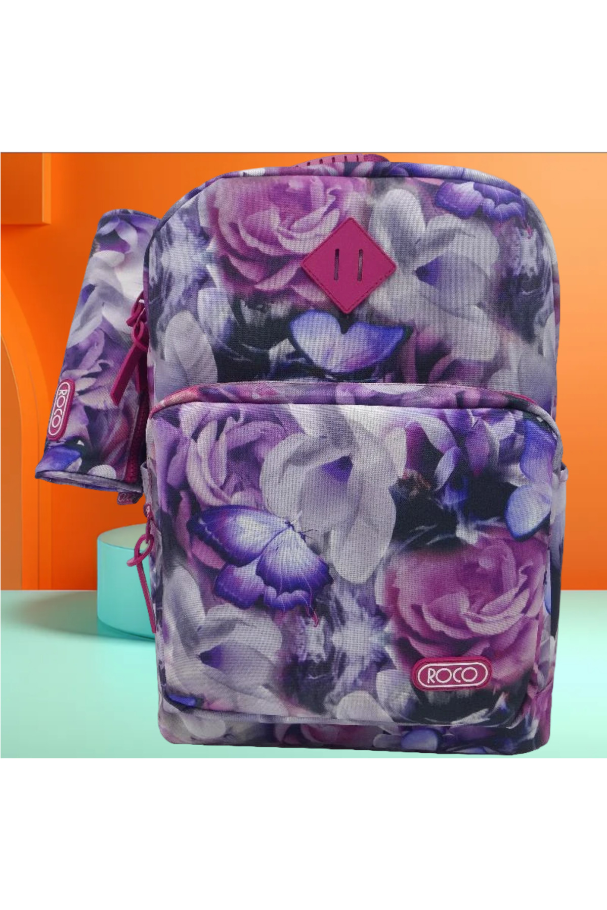 ميزات حقيبة ظهر مزينة بالزهور مع ملحق من Roco