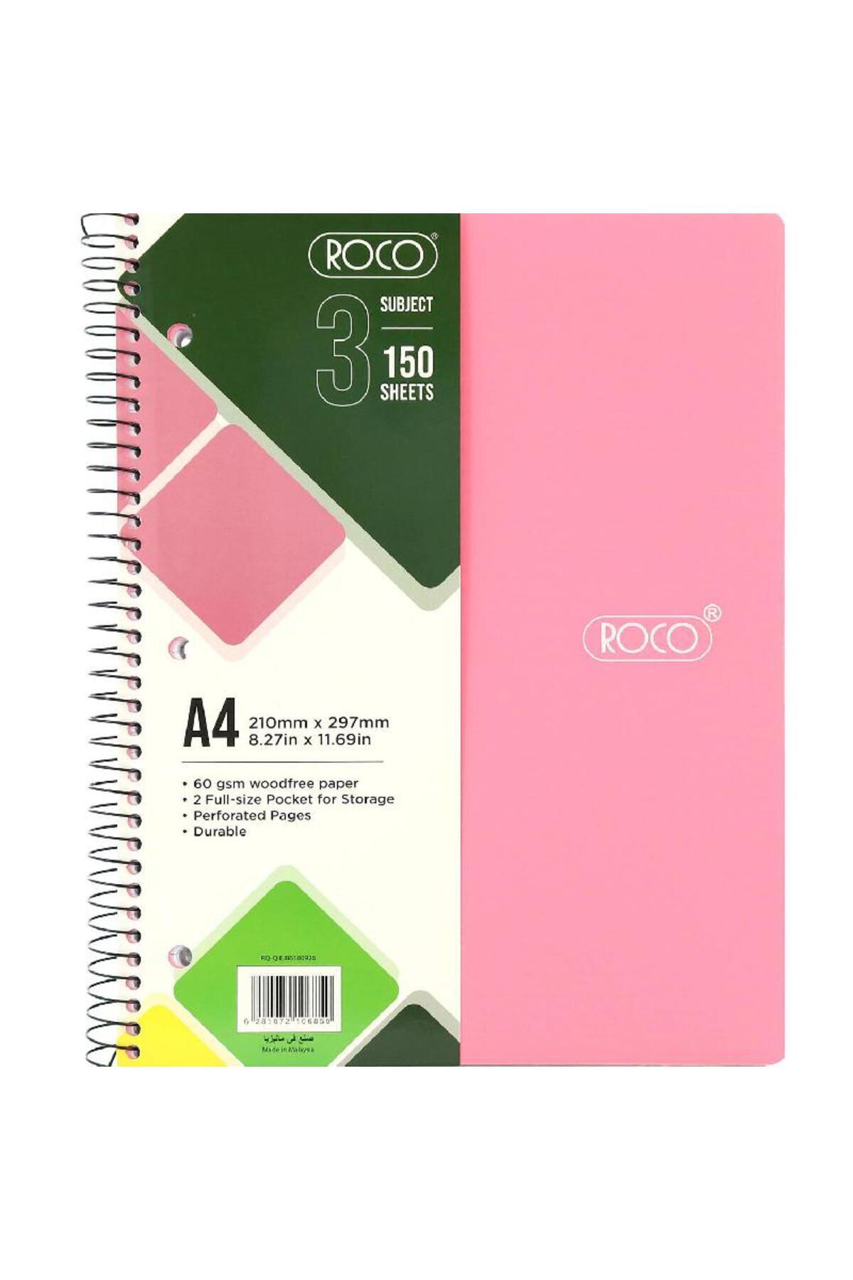 ميزات دفتر ملاحظات نيون A4، 150 ورقة مسطرة باللون الوردي من Roco