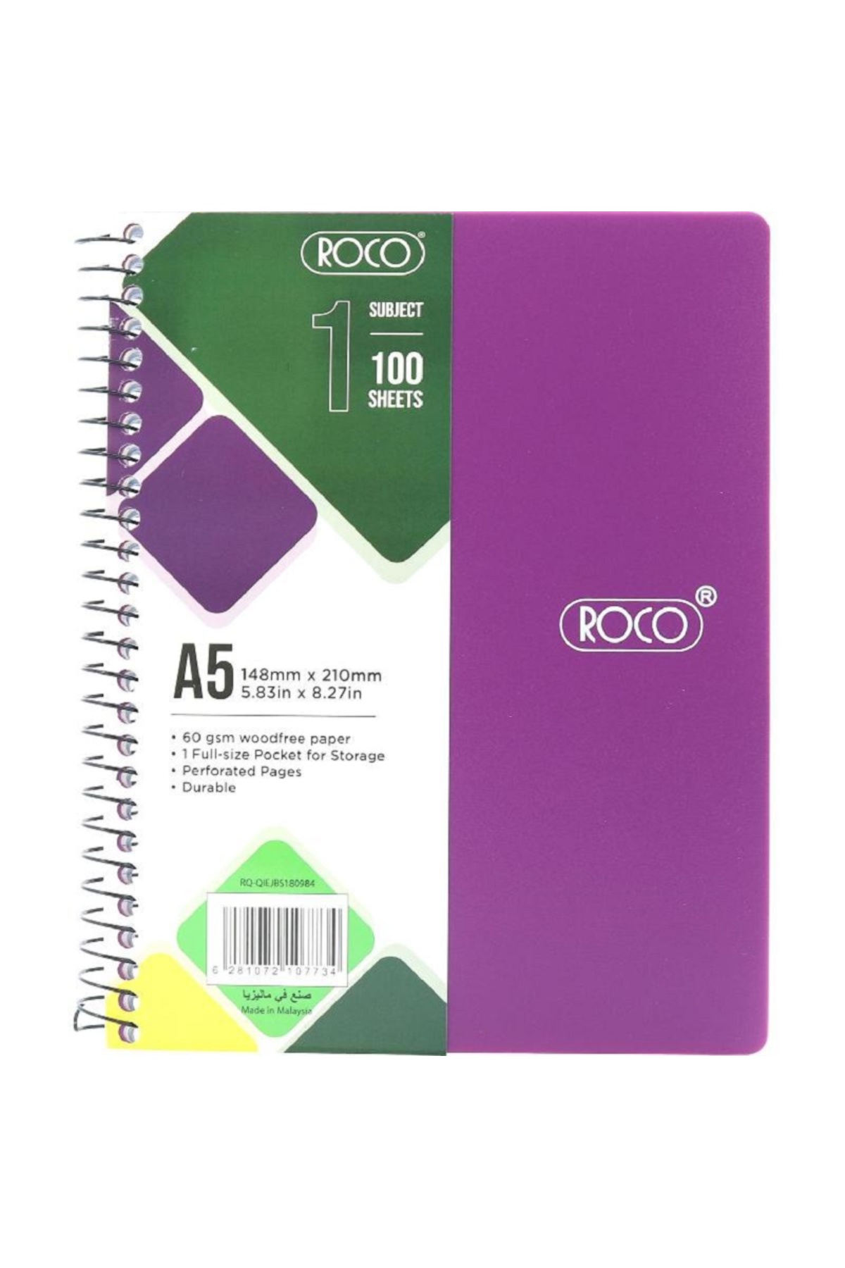 Roco دفتر ملاحظات نيون A5، 100 ورقة مسطرة باللون الأرجواني