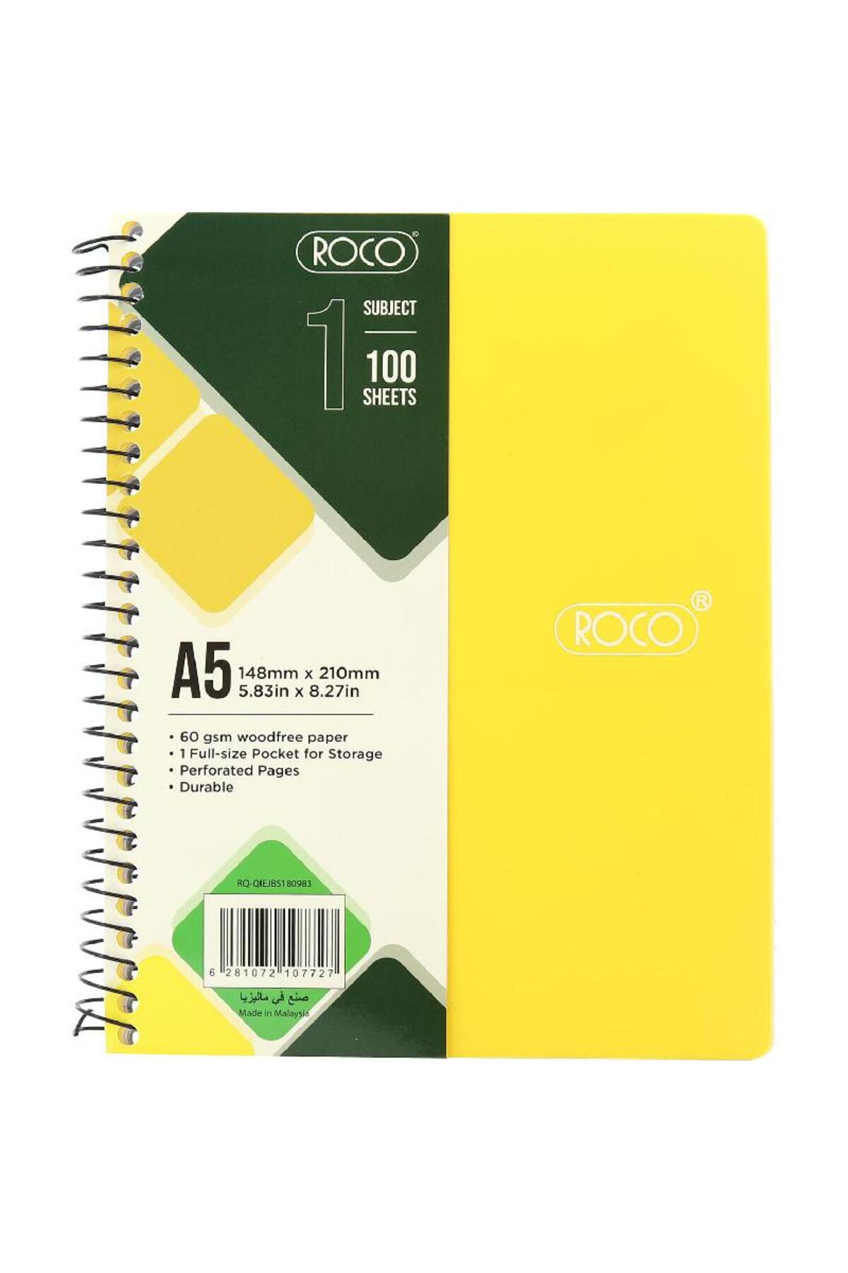 Roco دفتر ملاحظات نيون A5، 100 ورقة مسطرة باللون الأصفر