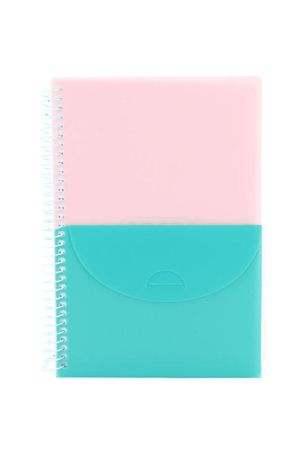 ميزات دفتر ملاحظات A5100 ثنائي اللون، مسطر، وردي/أزرق مائي من Roco
