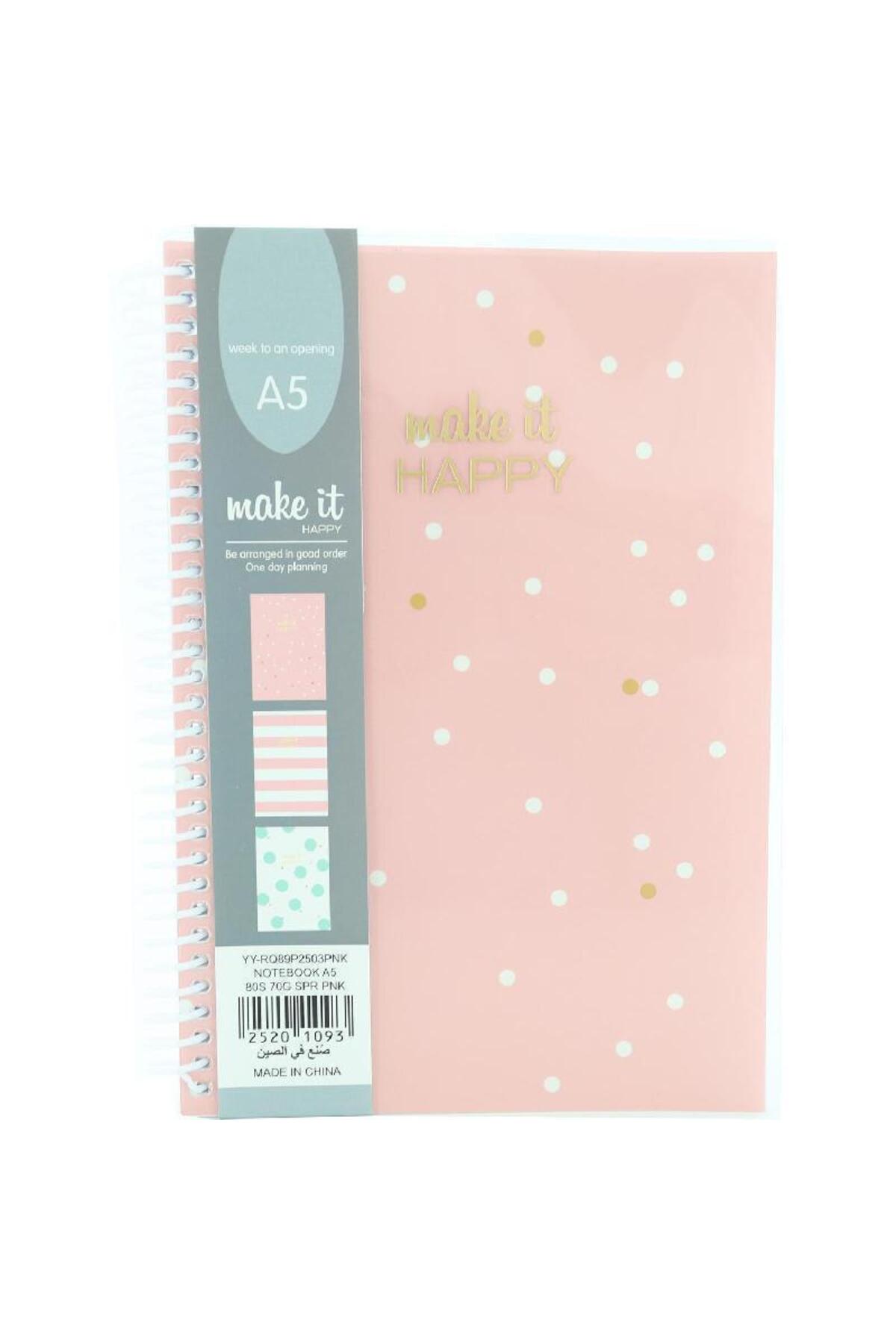 ميزات دفتر ملاحظات "اجعلها سعيدة" منقط، مقاس A580، مسطر، وردي من Roco