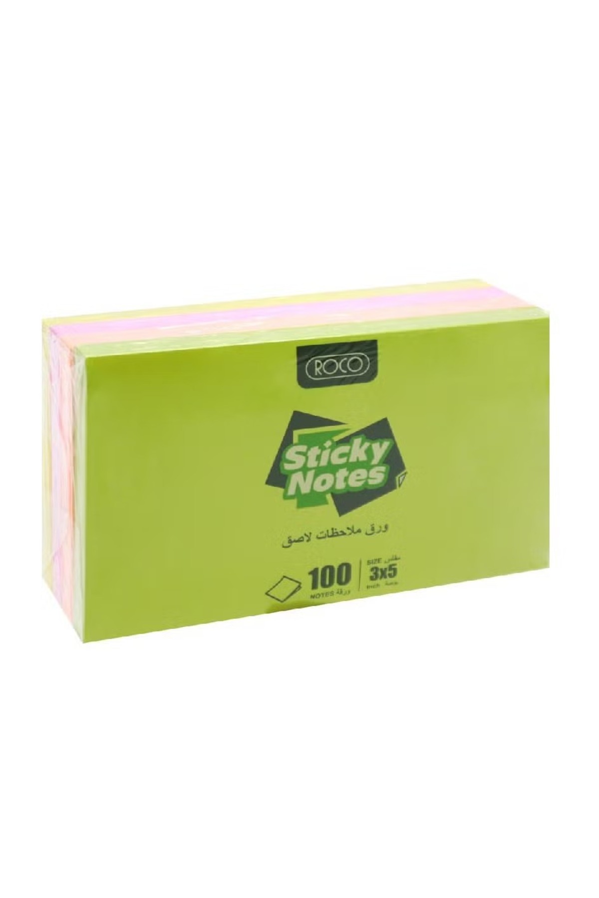 Roco ملاحظات لاصقة بألوان متنوعة - 3 × 5 بوصة - 100 ورقة - لوحة مستطيلة