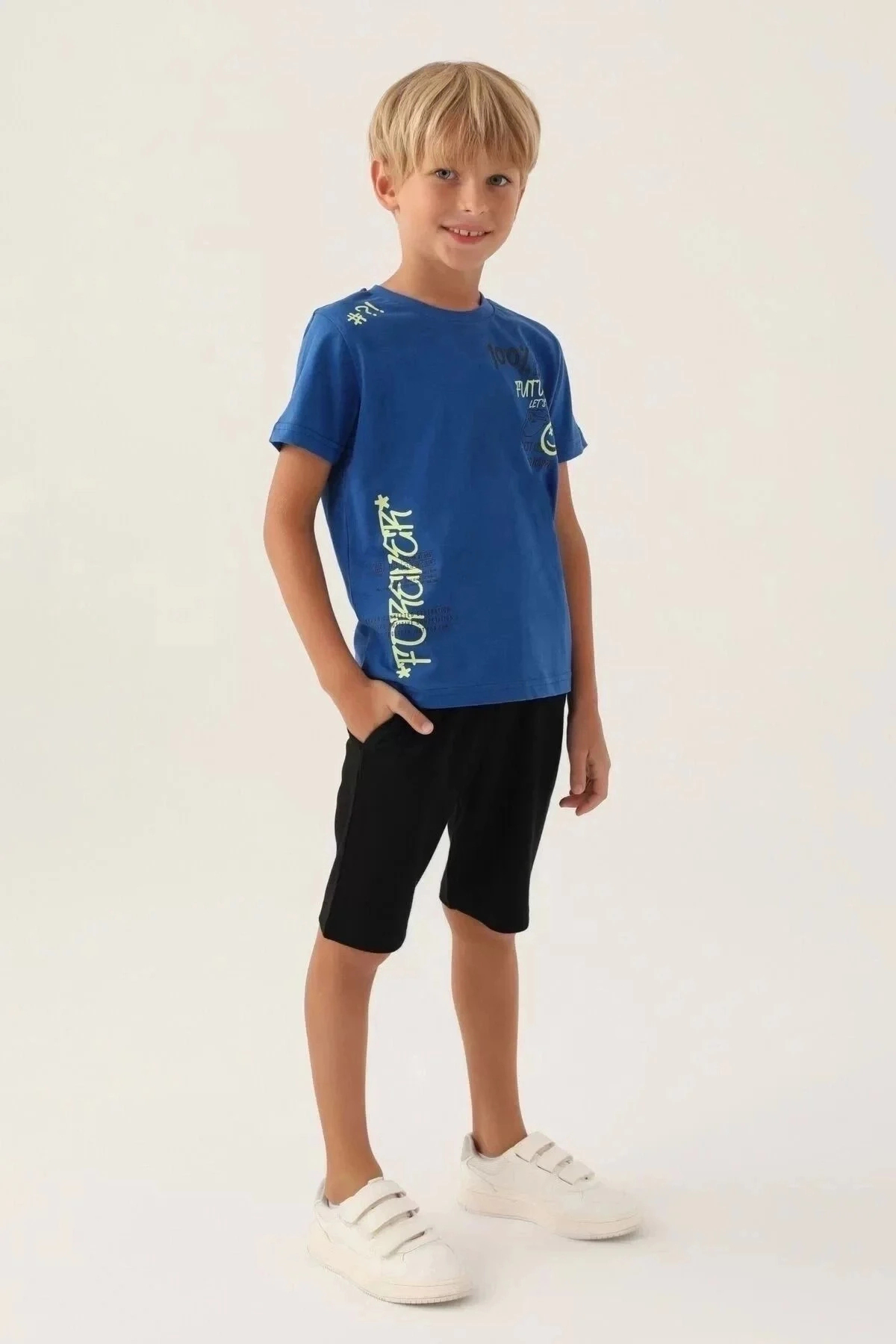 ميزات بدلة برمودا لون أزرق للأولاد من Rolypoly