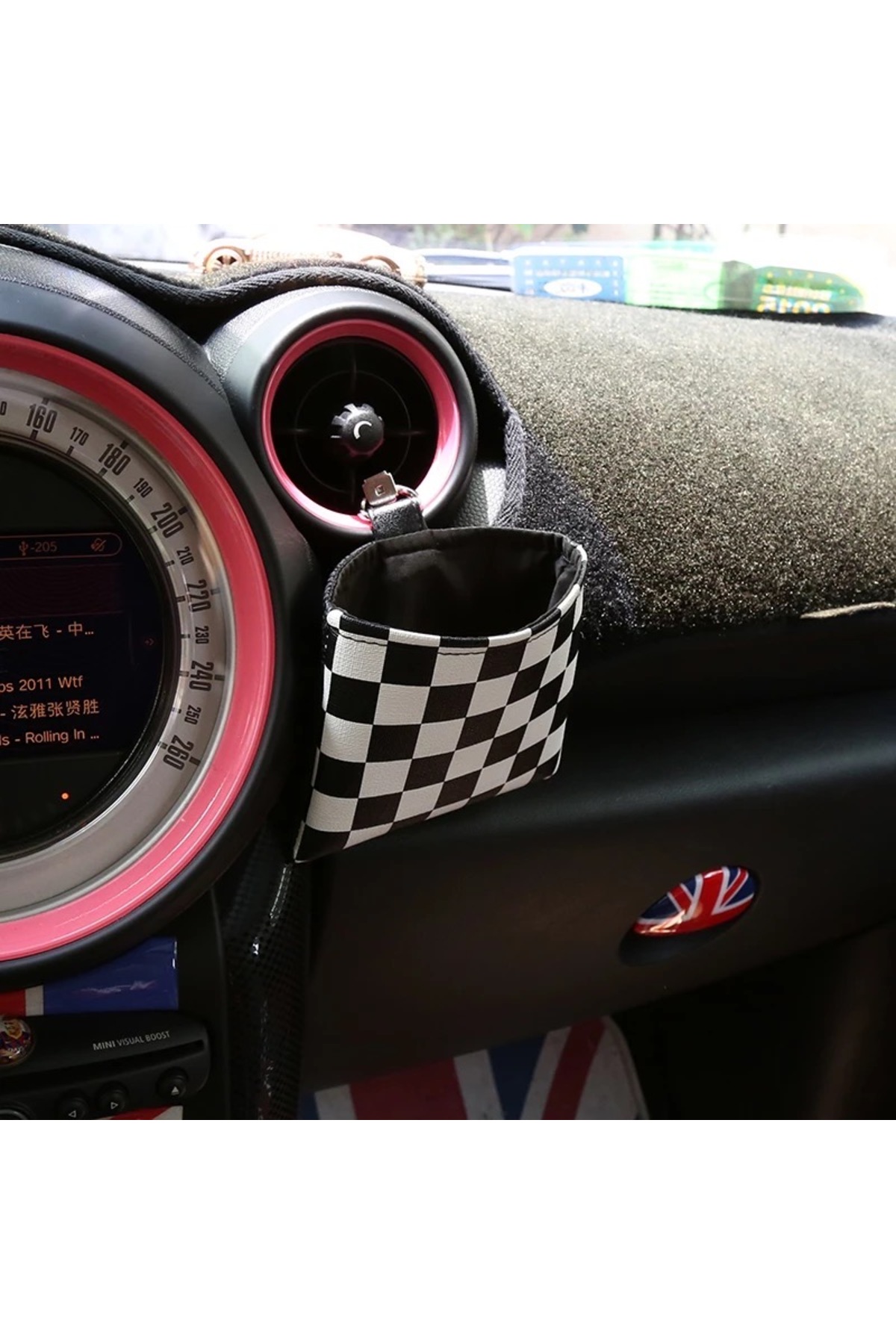 ميزات منظم صغير من الجلد بنمط الشطرنج - داخل السيارة، متوافق من RoseTR