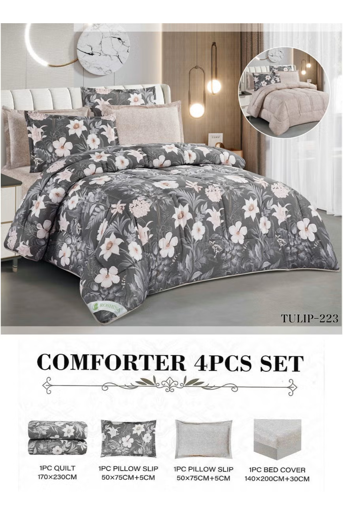 ROSHAN طقم مفرش سرير كوين (Queen) مكون من 4 قطع