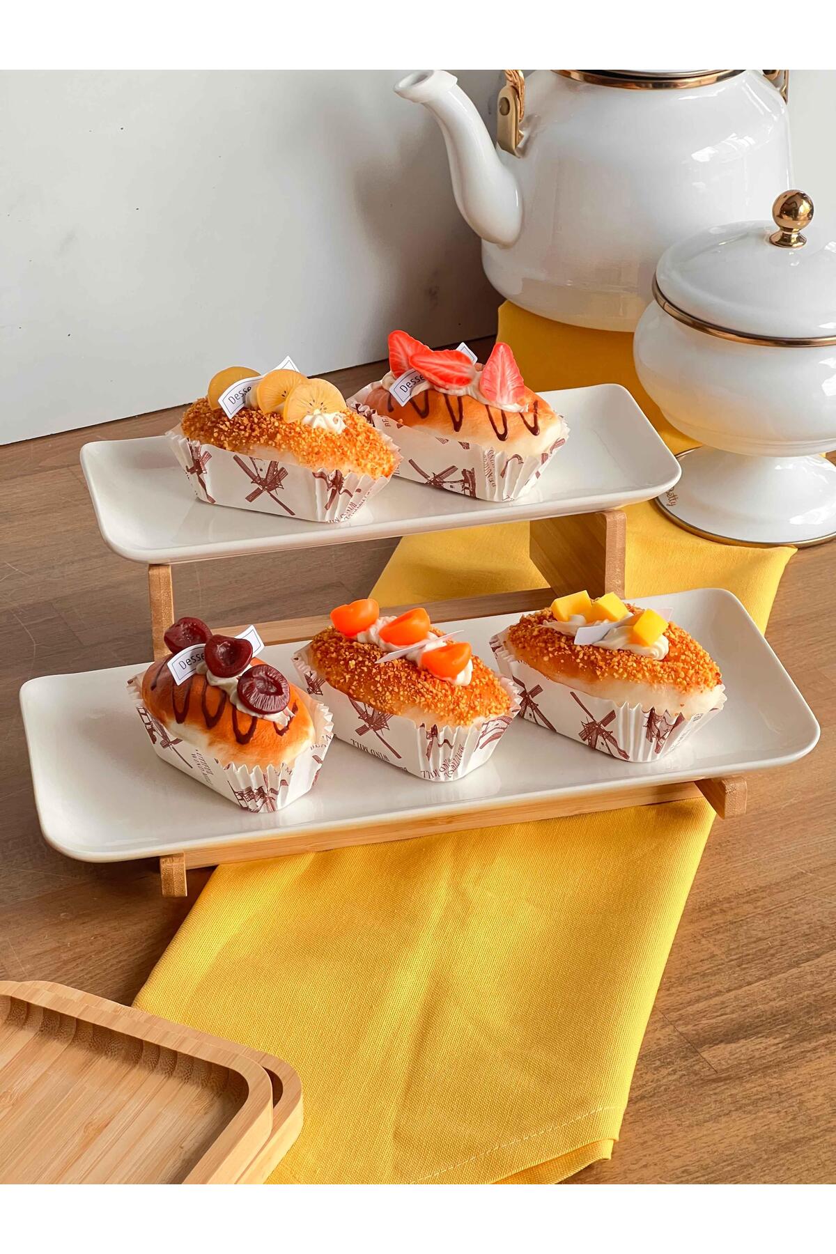 ميزات طقم تقديم مستطيل من طبقتين مع حامل من الخيزران 3 قطع من ROSSEV