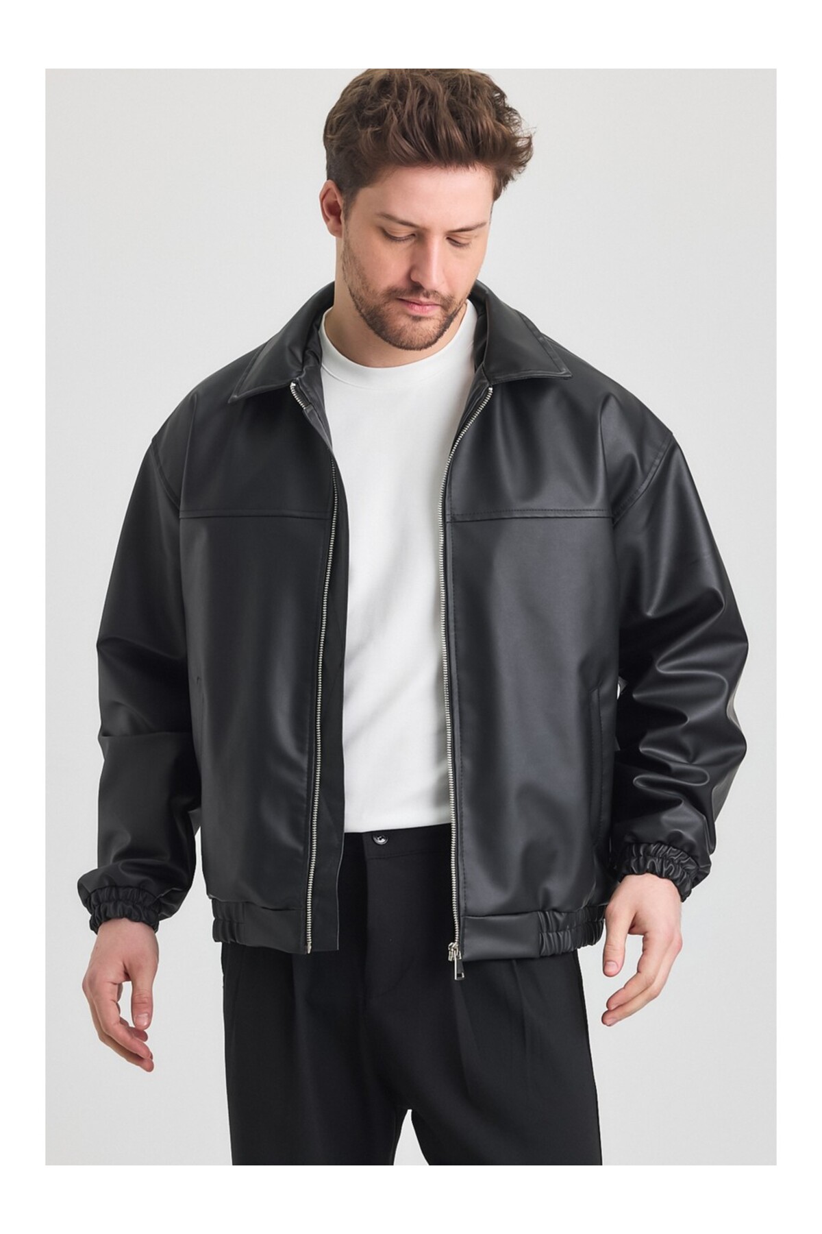 ميزات سترة جلدية سوداء كبيرة الحجم للرجال من Rowsmen