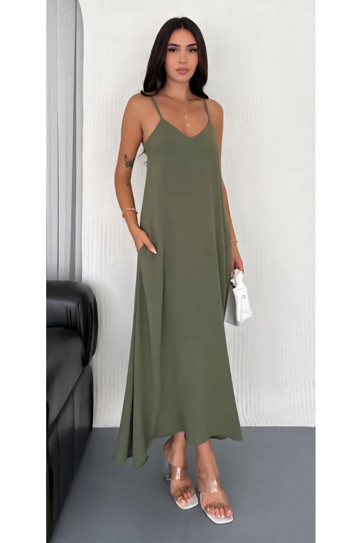 ميزات فستان أساسي طويل بحمالات من Şamdan