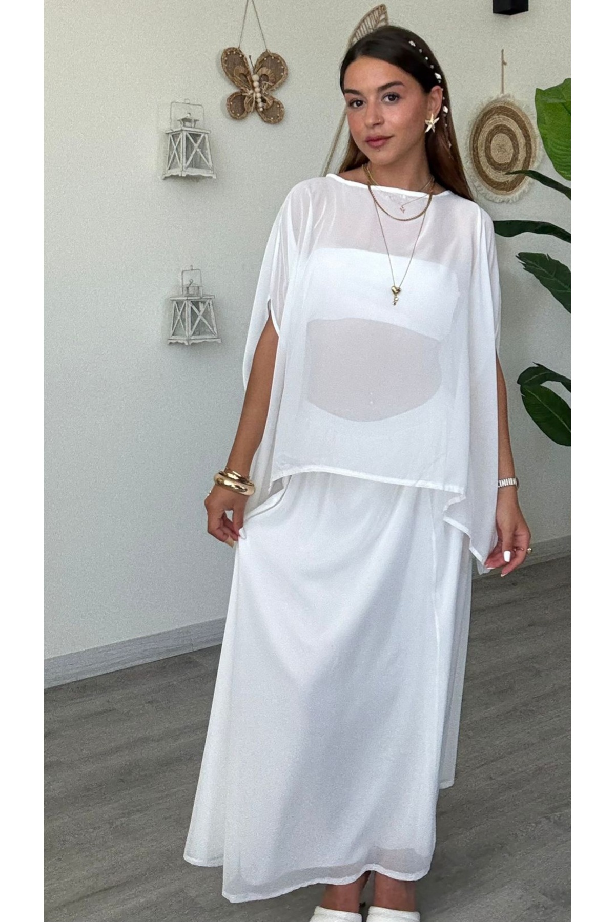 ميزات تنورة شيفون مبطنة بشكل مستقيم من Şamdan