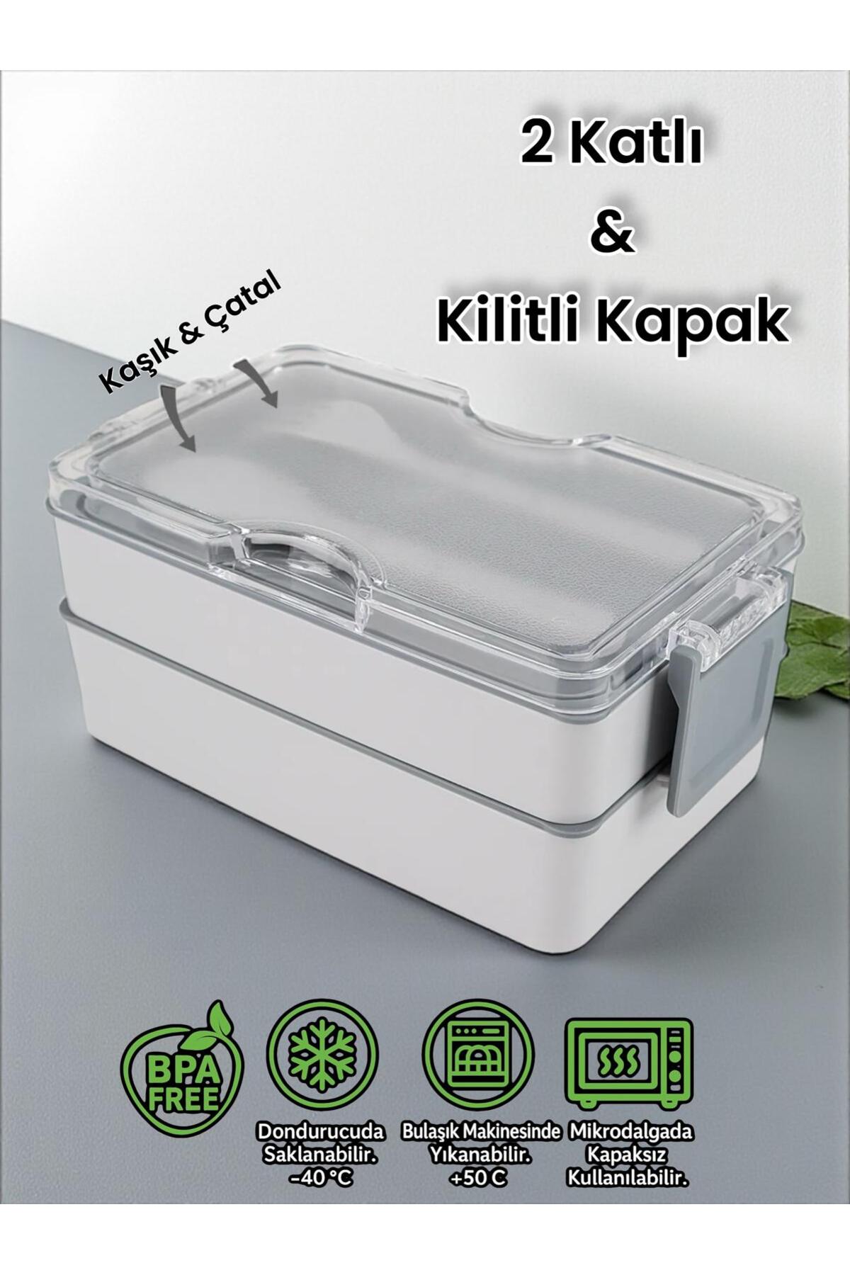 ميزات صندوق تخزين مستطيل ذو طابقين باللون الرمادي من SANALTİCARETİM