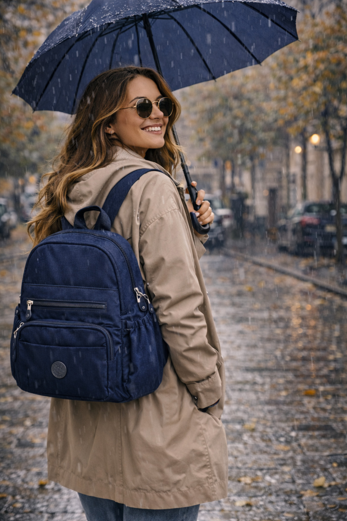 Saria Moda حقيبة ظهر رمادية مقاومة للماء متوسطة الحجم مبطنة ومتعددة الأقسام