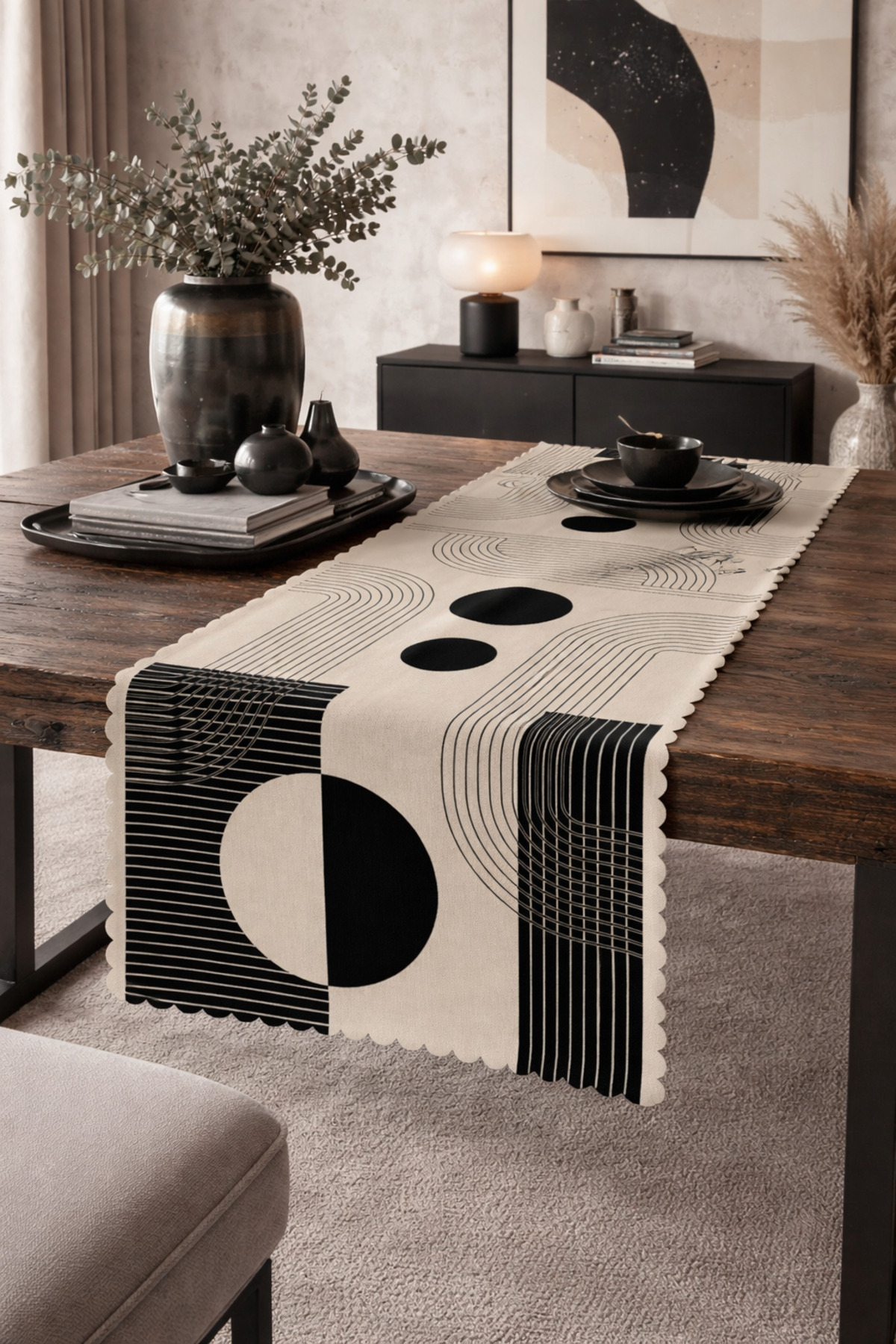 SasoHome خطوط خفيفة وكائنات هندسية منقوشة عداء ديكور مطبوع رقميًا