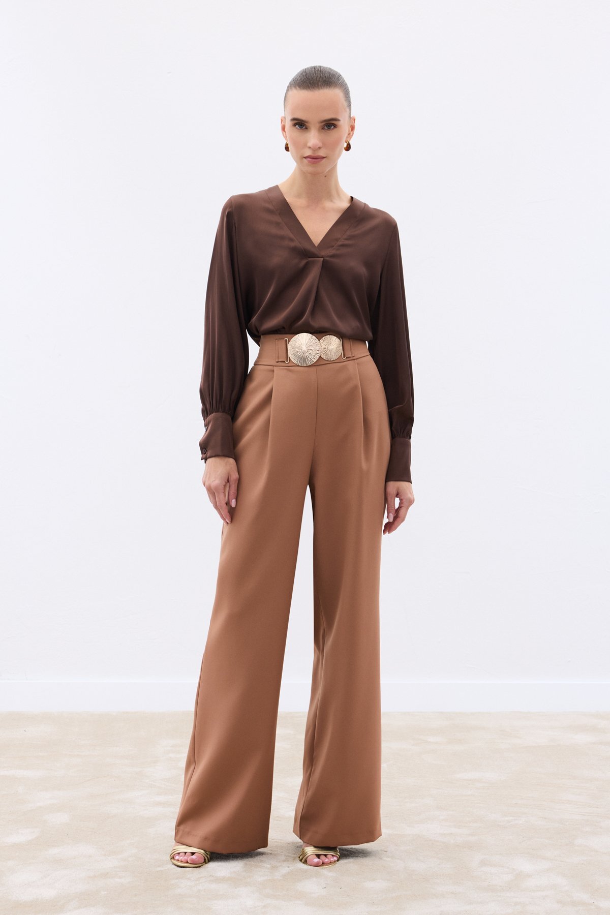 ميزات بنطلون مع إكسسوارات - لون جملي من Sateen