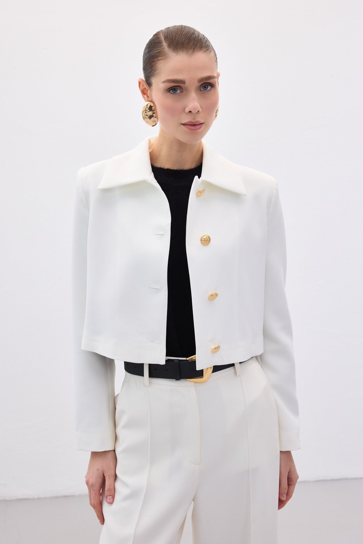 ميزات جاكيت قصير بأزرار - إكرو من Sateen