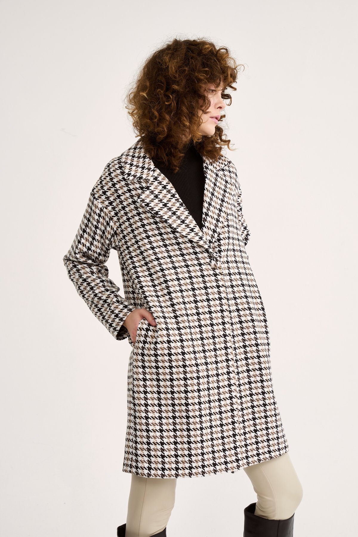 ميزات معطف بنقشة عصفور الزعرور - بني من Sateen