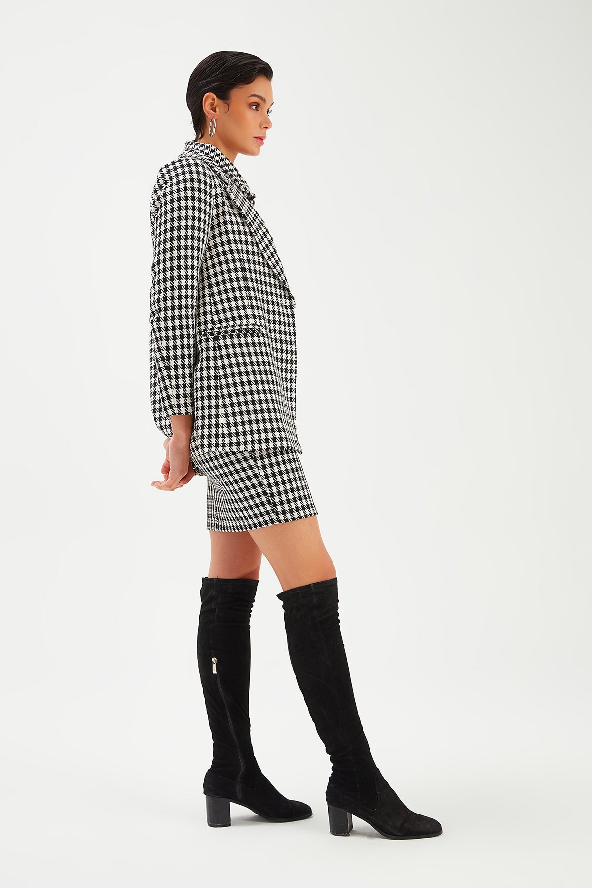 ميزات سترة بنمط هاوندزتوث - أسود من Sateen