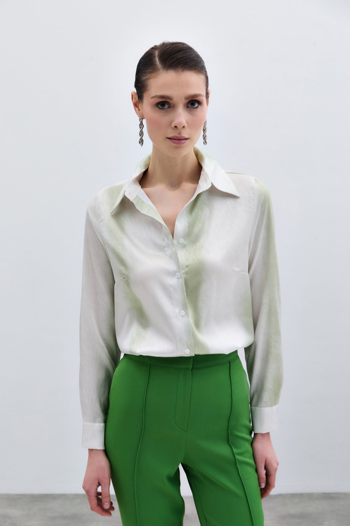 ميزات قميص كلاسيكي منقوش - أخضر من Sateen
