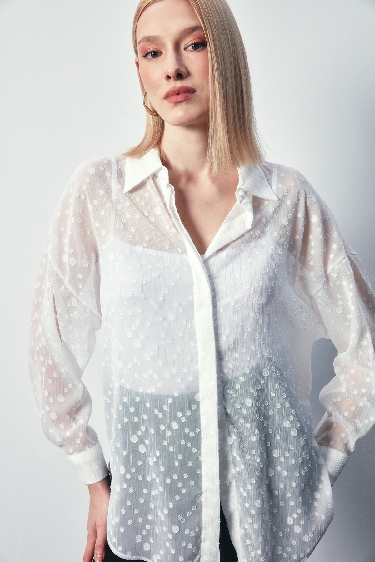 ميزات قميص طويل منقوش - إكرو من Sateen