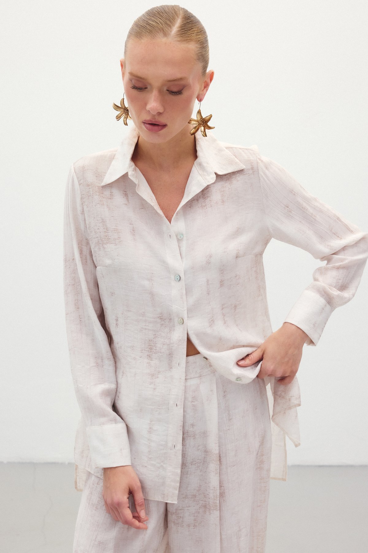 ميزات قميص فضفاض منقوش - حجري من Sateen
