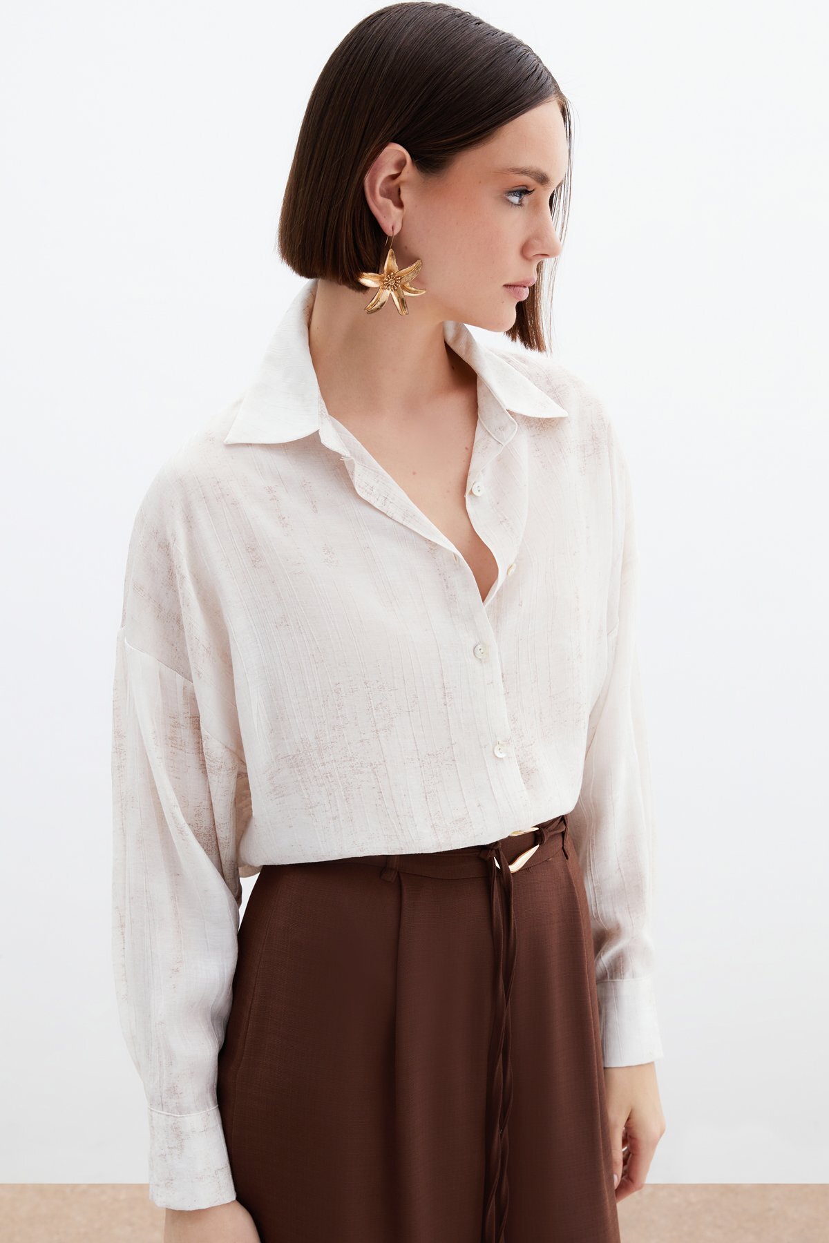 ميزات قميص فضفاض رفيع منقوش - حجري من Sateen
