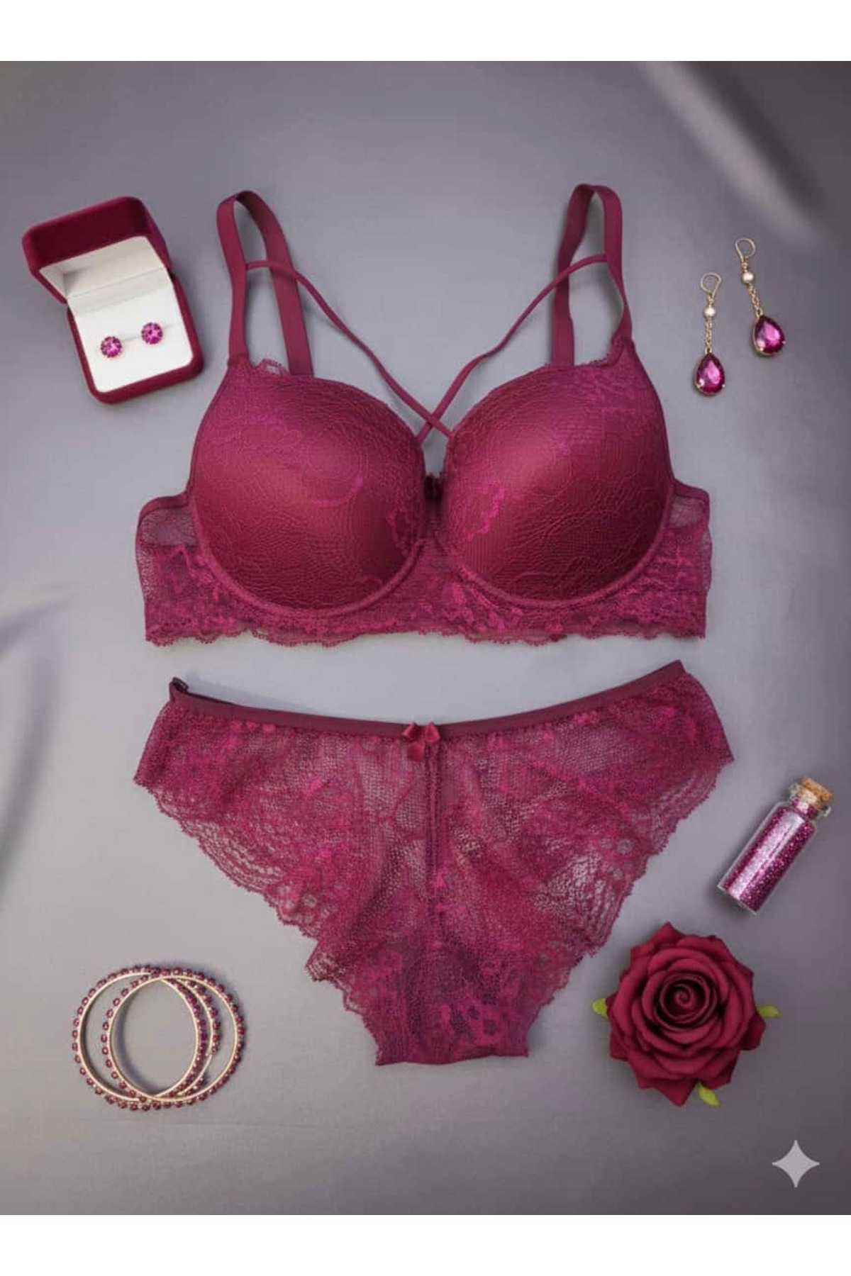 ميزات طقم حمالة صدر مبطنة من الدانتيل موديل كيلوت من SATTENS