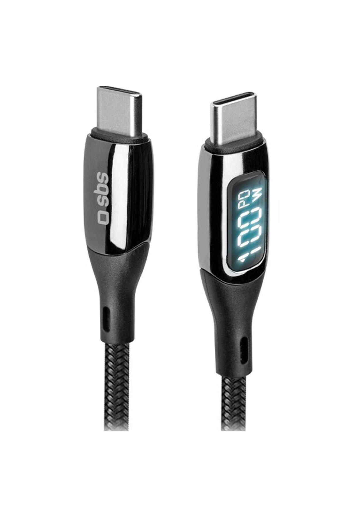 SBS كابل بيانات من النوع C إلى النوع C، بطول 1 متر، للشحن ونقل البيانات، بشاشة LCD