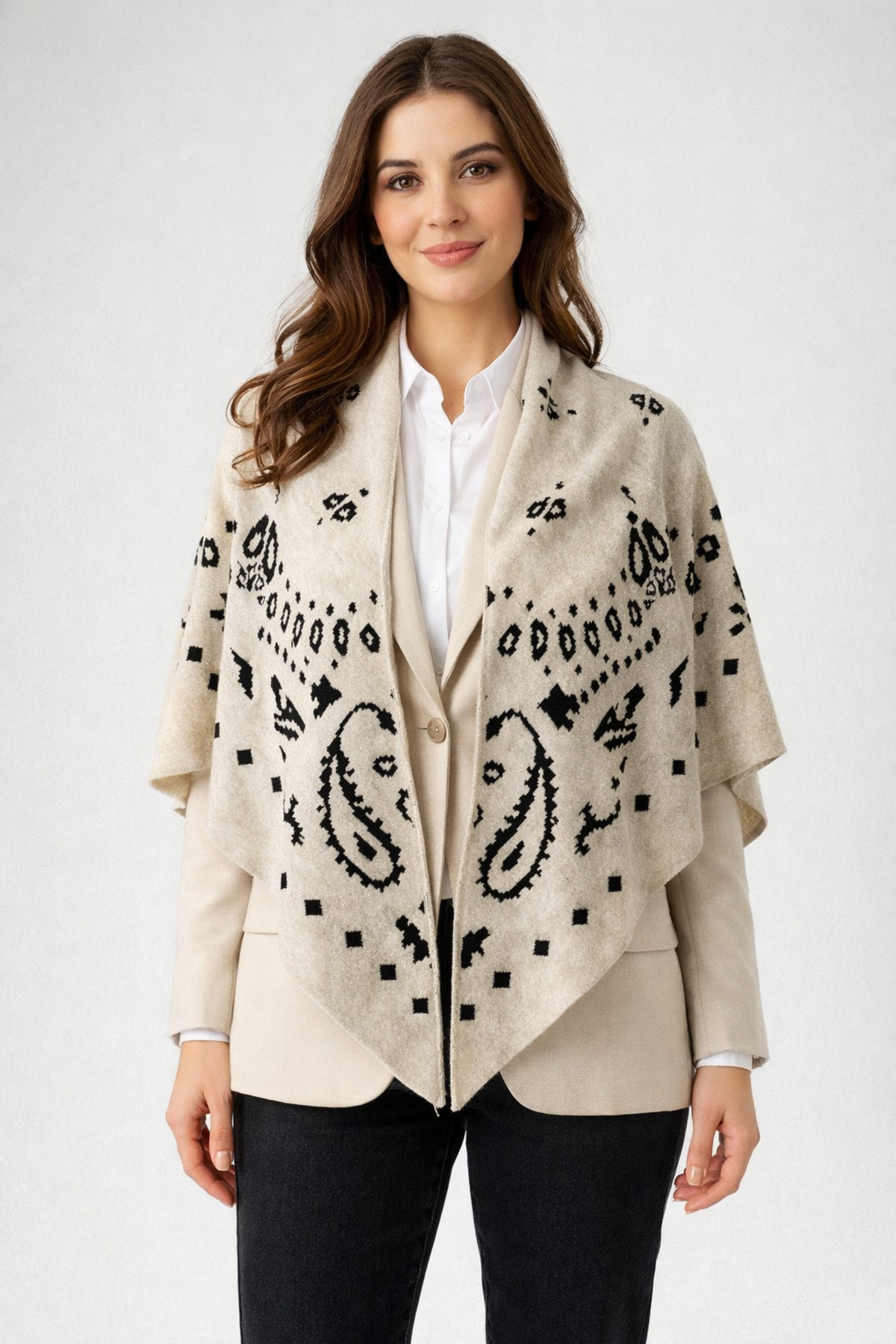 Sebir Moda شال مثلث منسوج منقوش ذو وجهين