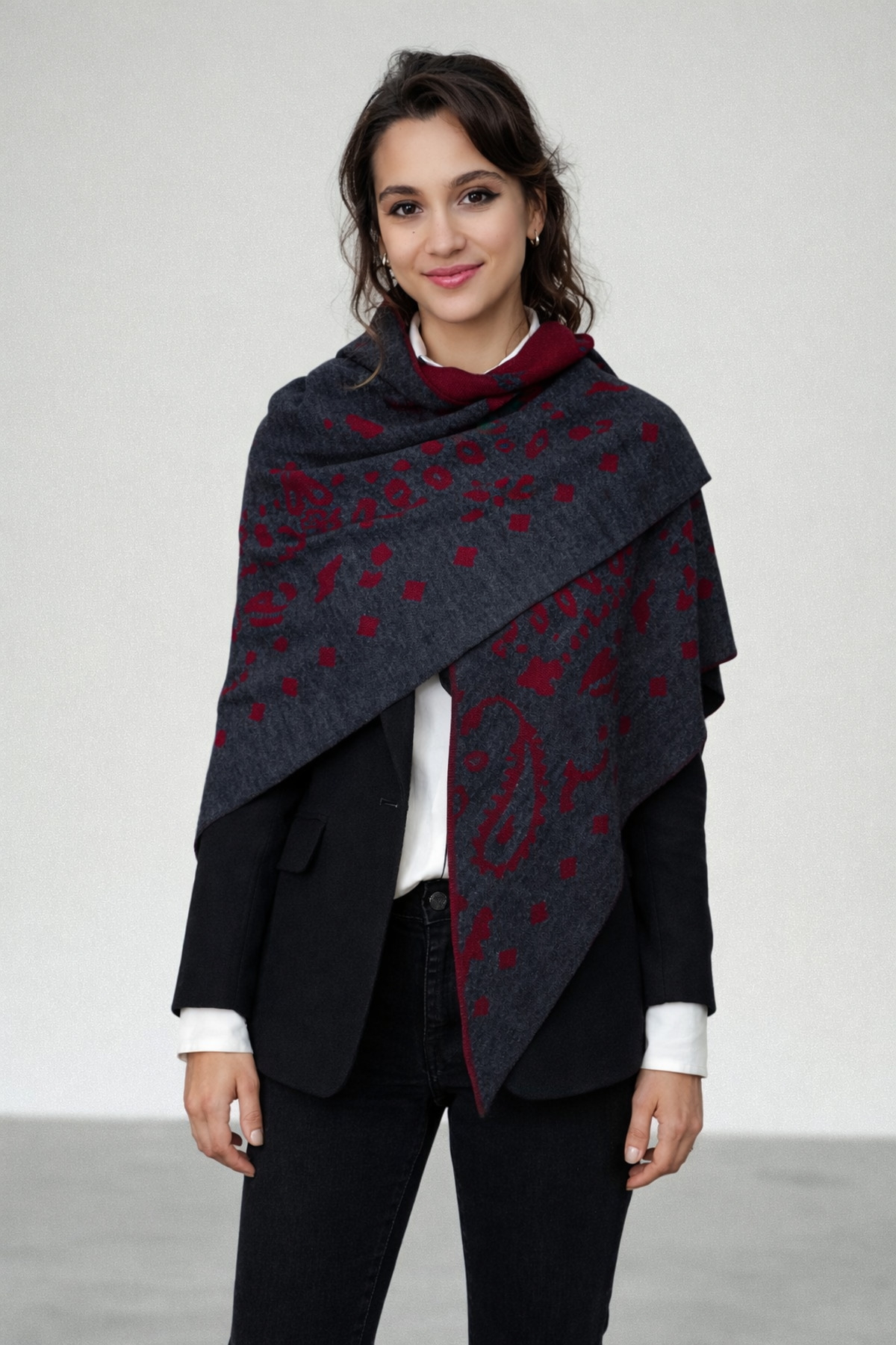 Sebir Moda شال مثلث منسوج منقوش ذو وجهين