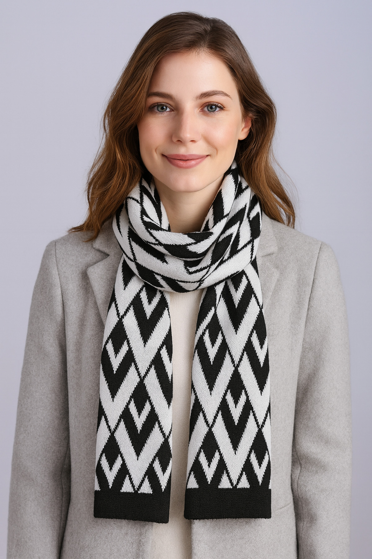 Sebir Moda وشاح تريكو منقوش على شكل V