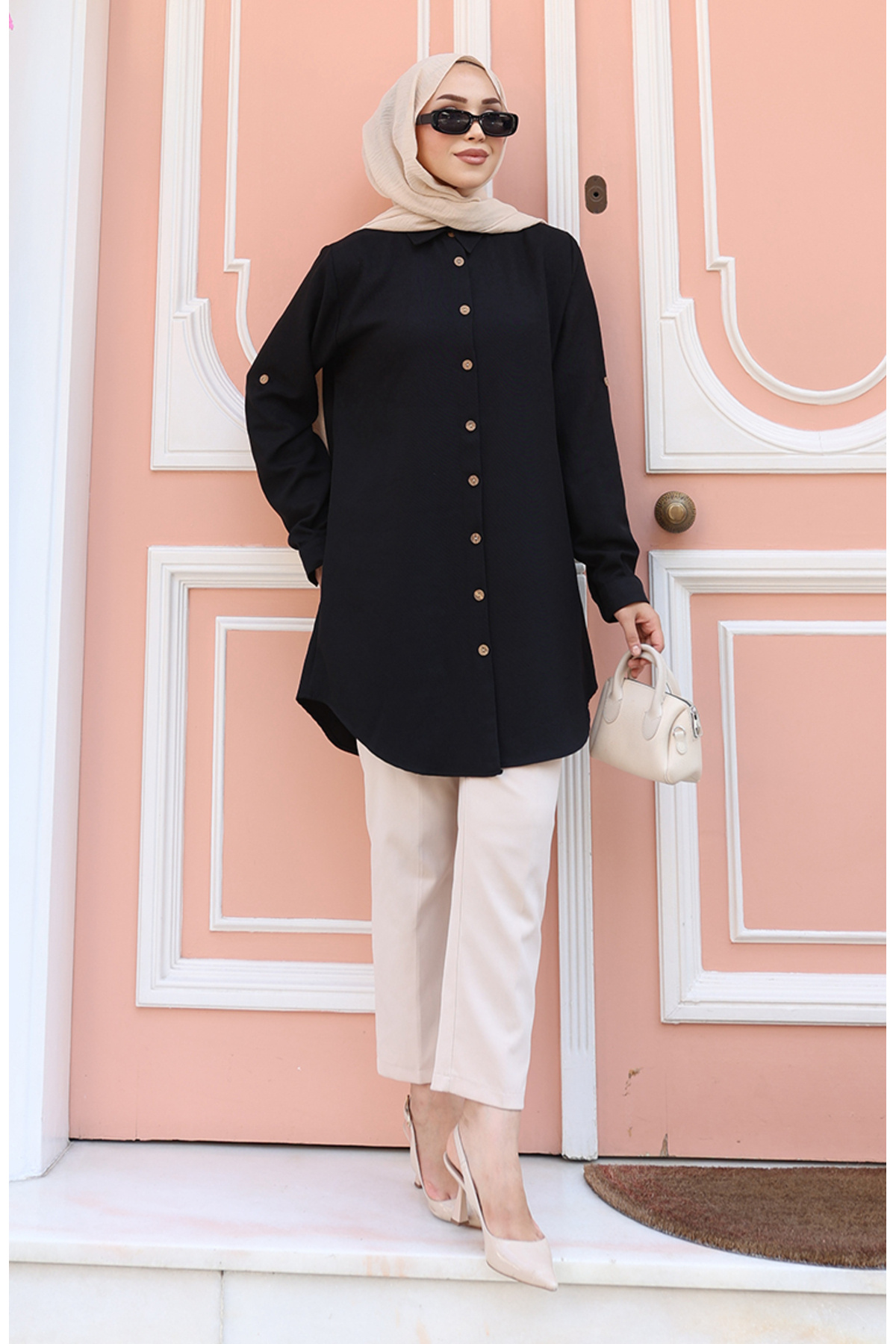 ميزات تونيك بأزرار 0147-01 أسود من sefamerve